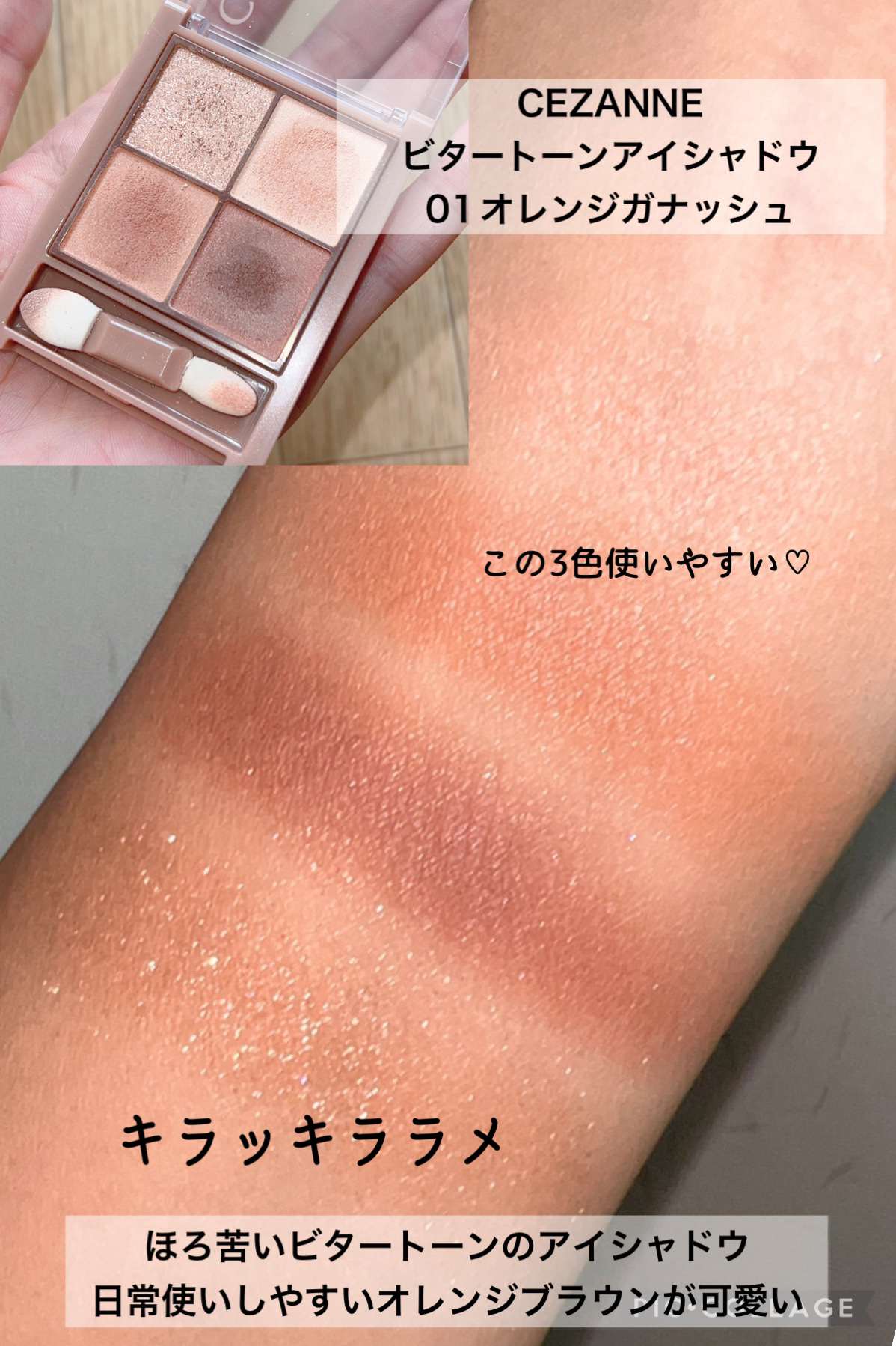 セザンヌビタートーンアイシャドウ01オレンジガナッシュ『ベーシックなのに洒落感のある温もりブラウン』・濃厚ブラウンで自然な陰影のある目元に・重ねてもくすみにくい、透け感のあるマットカラー・クリア発色のラメをプラスすると 立体感と華やかさを演出...