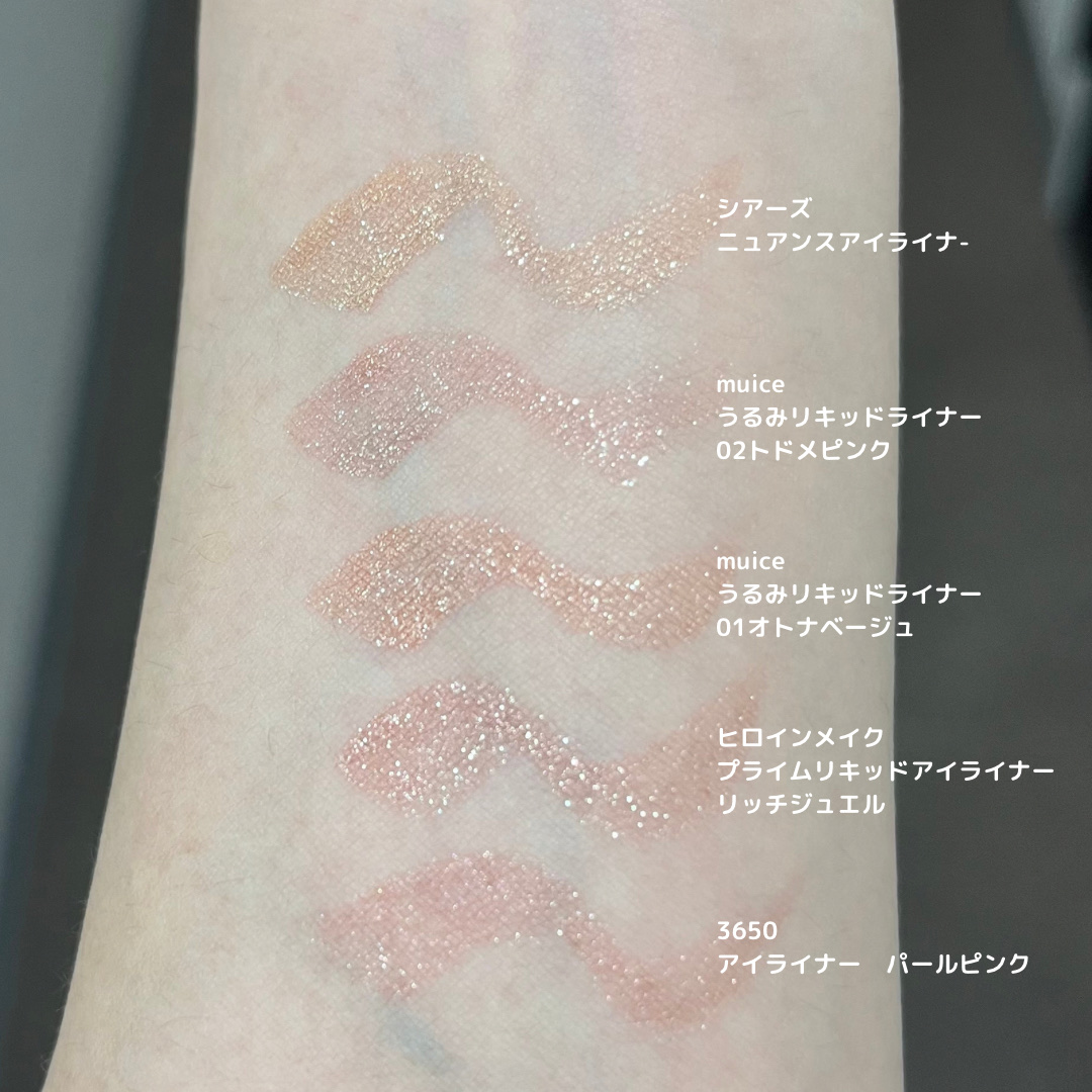 話題のキラキラライナーみーつけた🔍👀✨ 人気カラーだと特に出会えるのが奇跡かもって思っているのですが、なんと近くのスーパーに可愛いカラー発見で案の定すぐ買っちゃいました👏 ミストピンクはぱっと見ピンクニュアンスではあるのですがよく見ると結構シルバーのラメが強め!やっぱり可愛かった😍 ラメ好きとしてはこれは悶える可愛さですよ❤️🔥 こんなにキラキラなのにラメ落ちしない!!密着力がとにかくすごいんです✨ これで本当にお湯落ちなの凄すぎる。