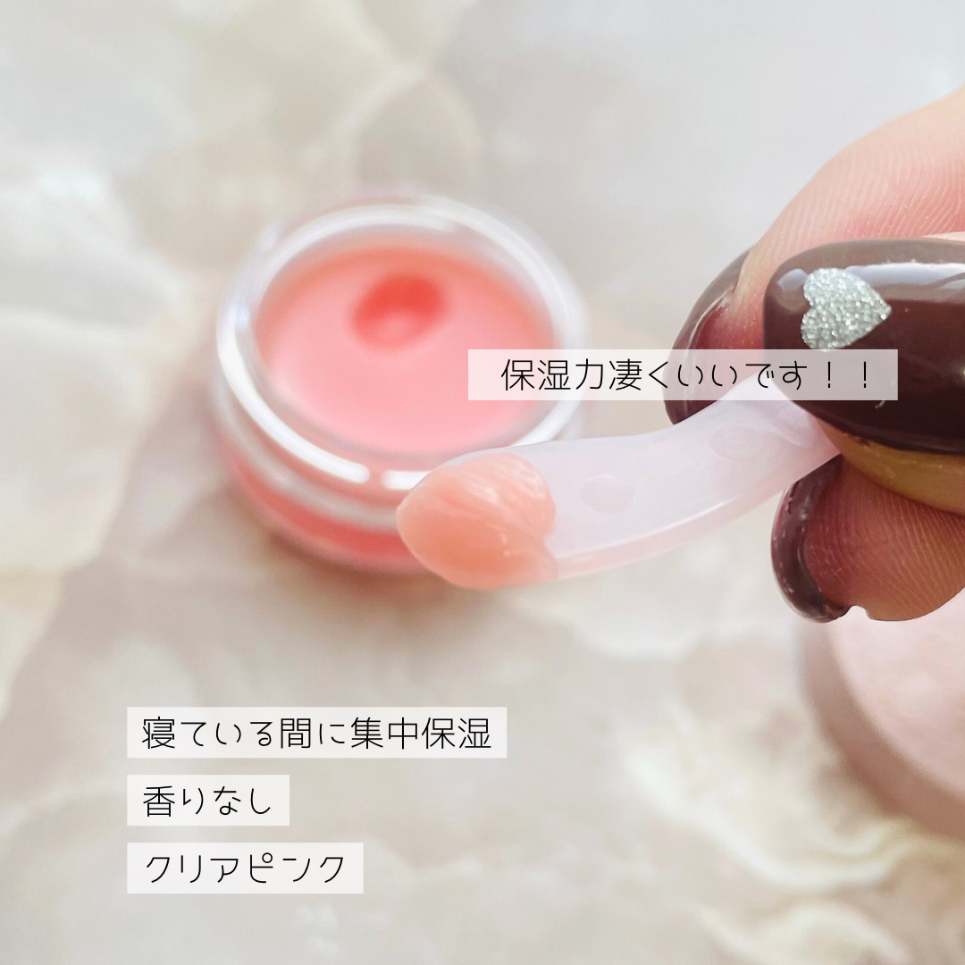 - 寝ている間に集中保湿ケア ぷるんと唇に整えるリップマスク とろけるなめらかな塗り心地でベタつきにくく、快適にトリートメント✨ たっぷり塗って夜の集中ケアに🌙 うすく塗って日中のリップ下地に🌞 無香料