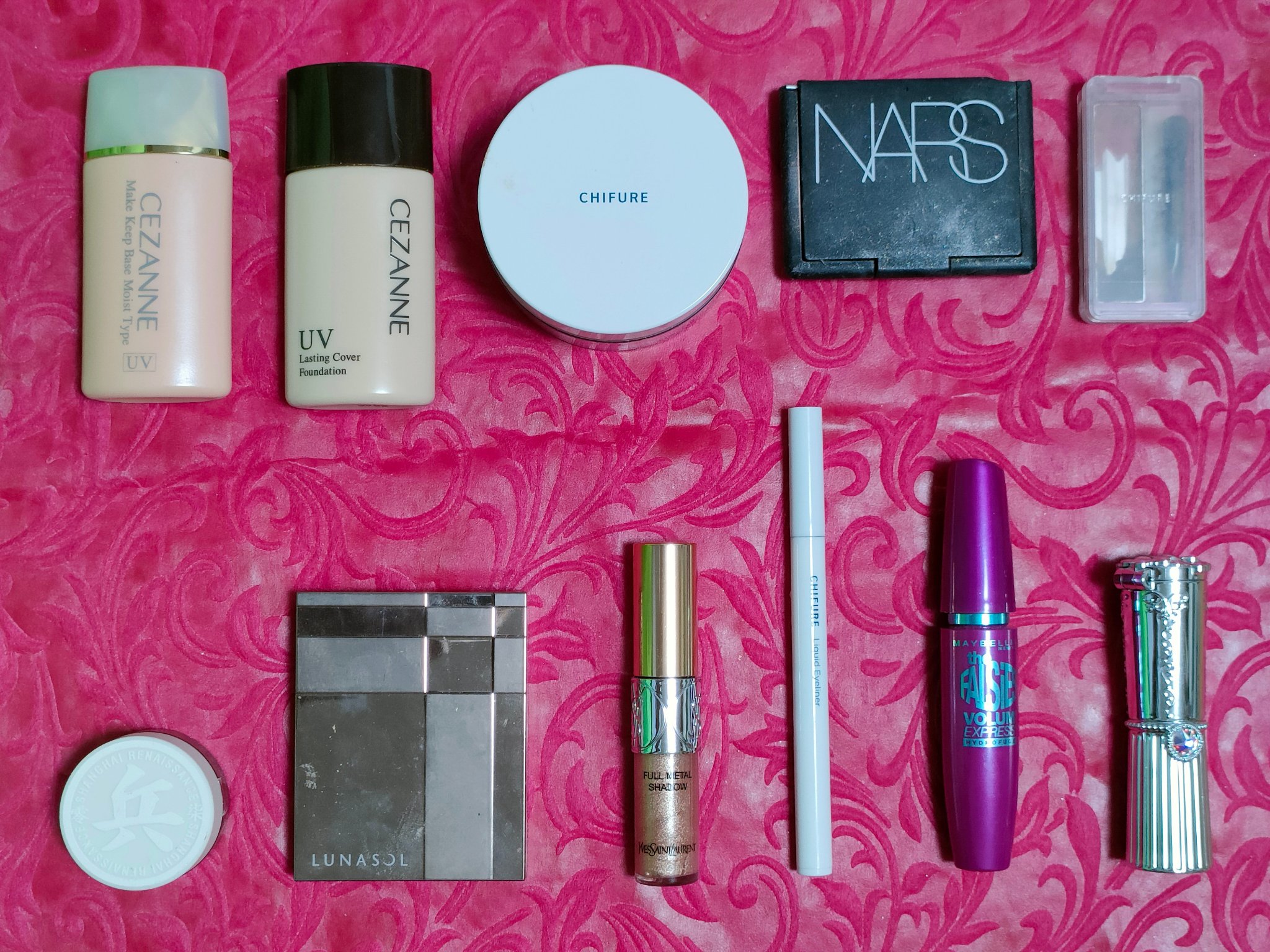 アリィー ニュアンスチェンジUV ジェル RSを、顔全体にまんべんなく塗ります。 RMK RMK ジェルクリーミィファンデーション 103を、顔全体にまんべんなく塗ります。 ジョンソンベビー ジョンソン ベビーパウダーを、顔全体にまんべんなく軽くはたきます。 THE BODY SHOP bronze shade warm glowを、両頬に塗ります。 KATE リフレクトミラーアイズ BR-1の締め色を、眉毛全体にまんべんなく塗ります。 URGLAM UR GLAMBLOOMING EYE COLOR PALETTE 01を、使用しました。 ちふれ リキッド アイライナー 筆ペンタイプ BK30 ブラックを、塗ります。 CEZANNE エアリーカールマスカラを、まつ毛全体にまんべんなく塗ります。 MAYBELLINE NEW YORK コロッサルボリュームエクスプレスを、まつ毛全体にまんべんなく塗ります。 MAYBELLINE NEW YORK SPステイ マットインク 135を、唇全体にまんべんなく塗ります。