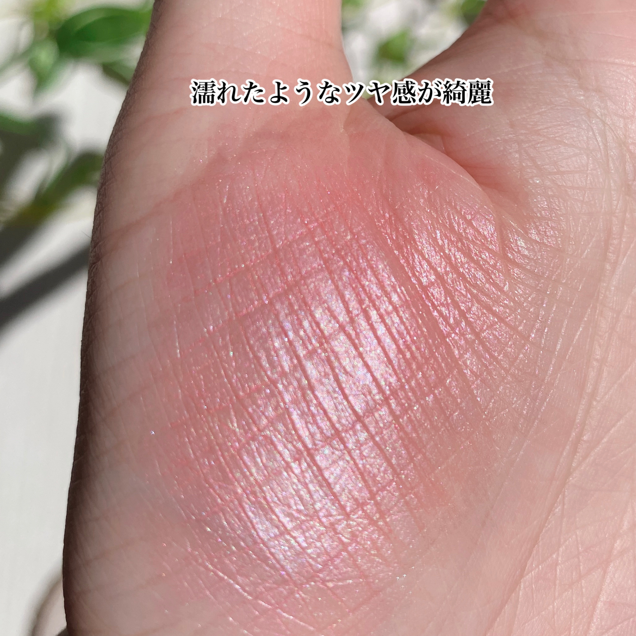 触るとむにゅとした質感、塗るとサラッとした質感になりました。 ピーチダズルは上気したような血色が自然に生まれるピンクコーラル。可愛いらしい色です。 パールとラメ入りなのでツヤのある仕上がりになりました🫶