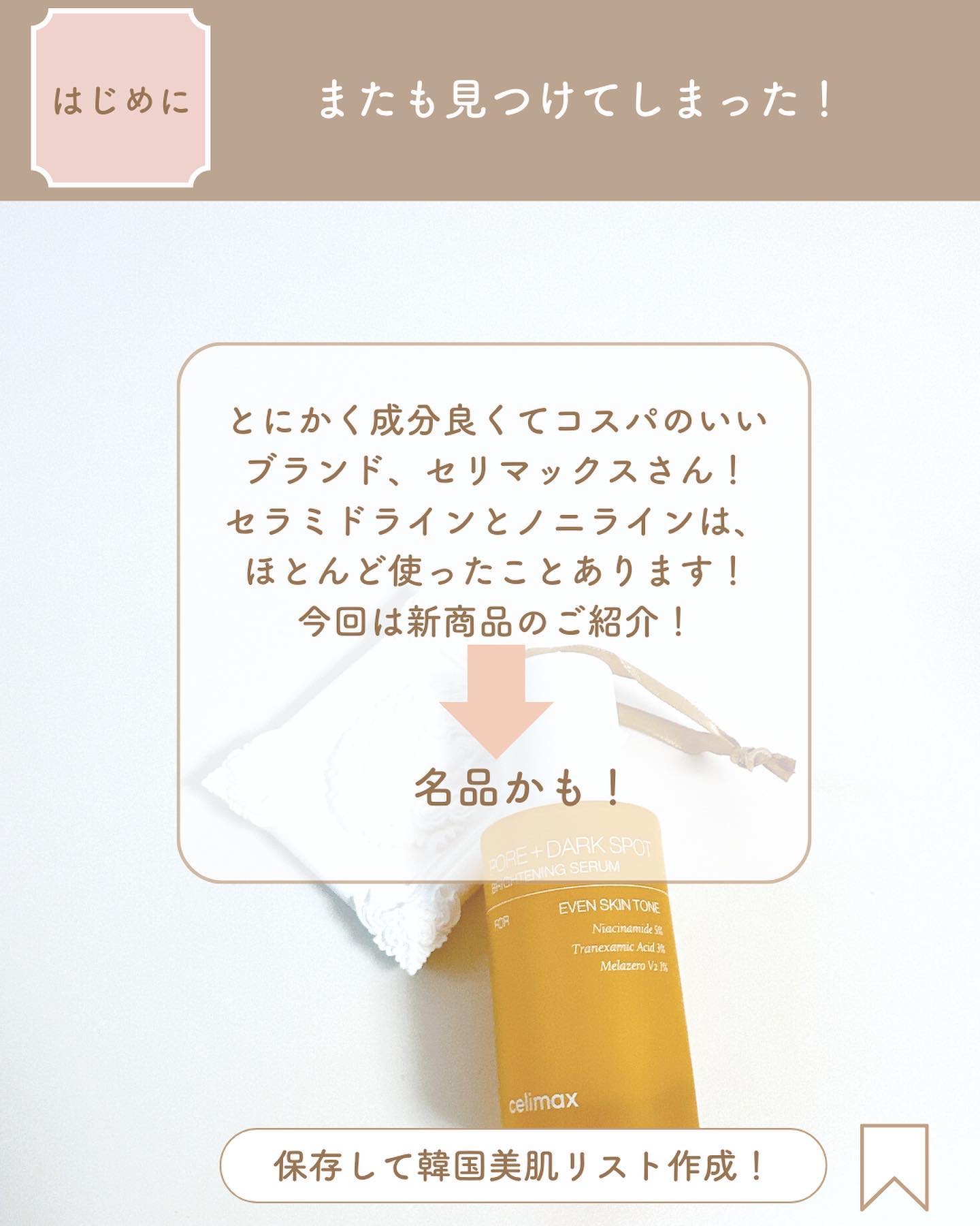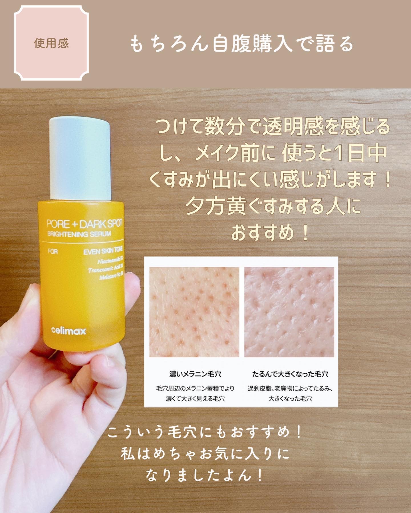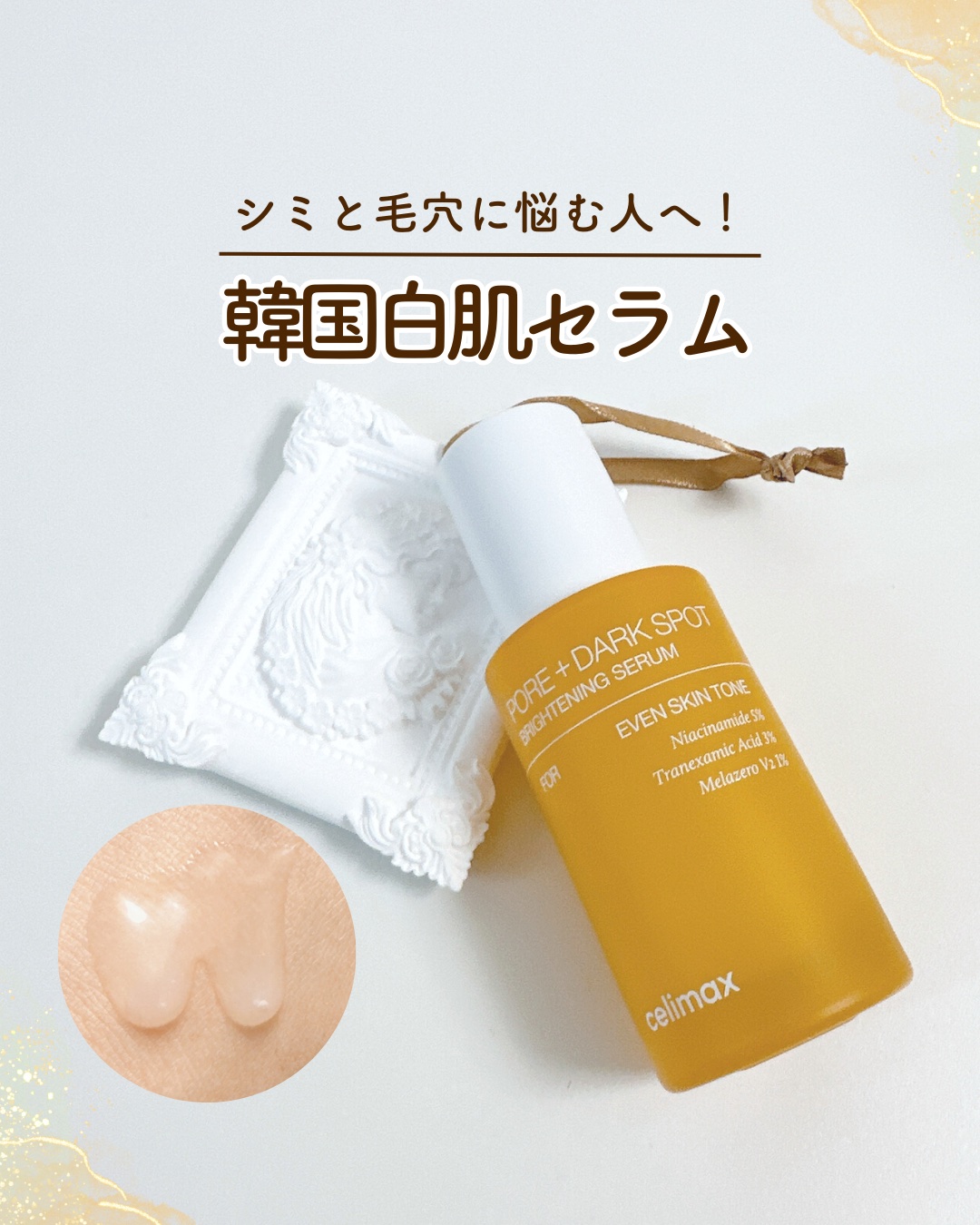 celimaxポアブライトニングシミケアセラムポアブライトニングシミケアクリームcelimax様からいただきましたトラネキサム酸とナイアシンアミドを贅沢に配合したポアブライトニングライン🧡肌印象を整える成分として注目のトラネキサム酸!みずみず...