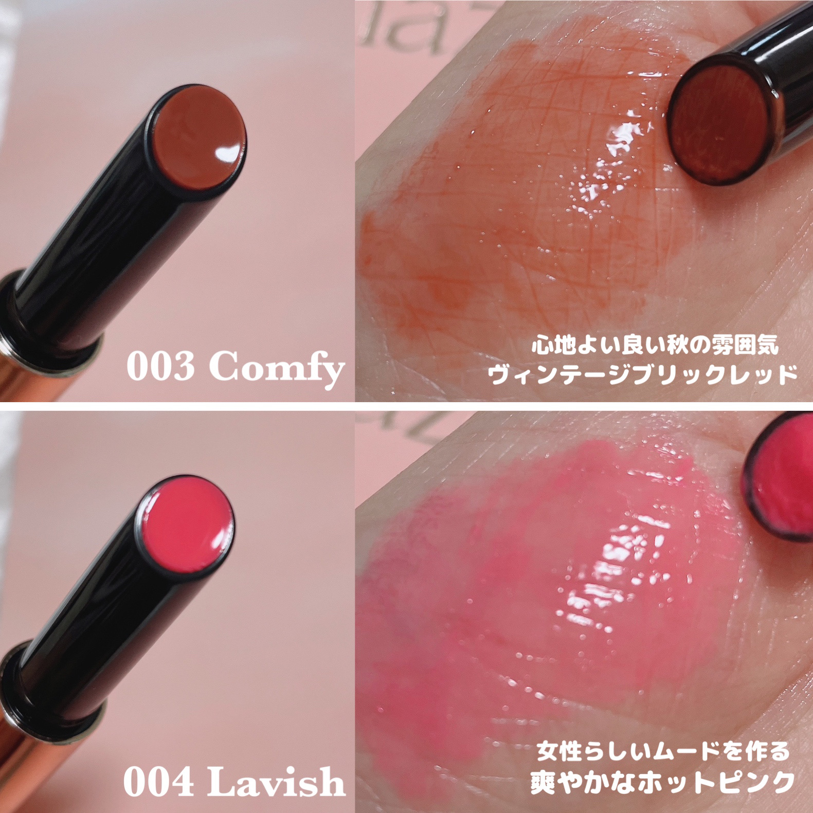 \暖かみのある血色カラー🧸/♡CoralhazeVolumizingLipFondue☑︎03.Comfy肌馴染みのいい、少しブラウンみが感じられるブリックレッド。公式ではレッドってあるけど、個人的にはオレンジみが強いなっと感じました🧡重ね塗...
