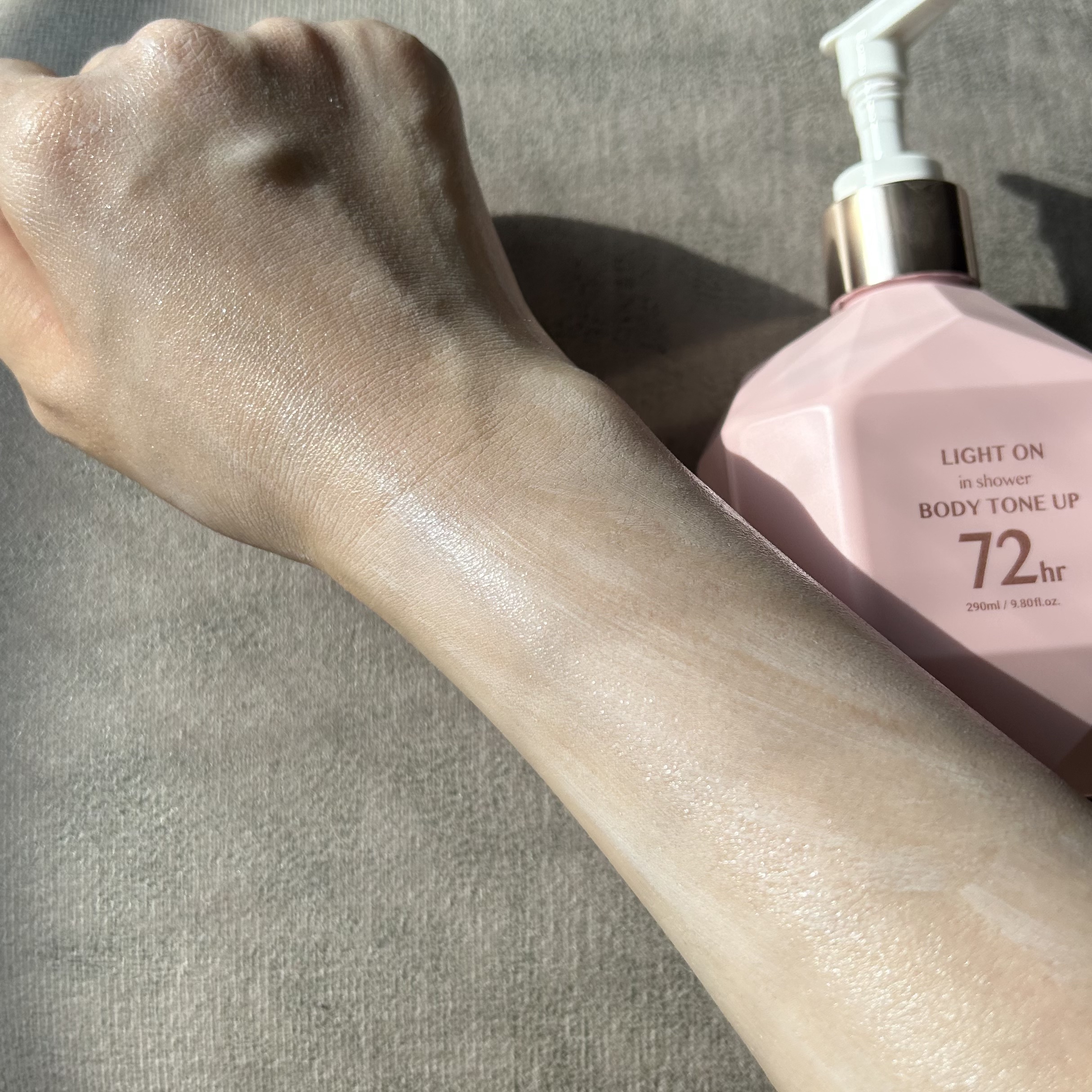 - お風呂で塗るだけで、肌が生まれ変わる⁉ 濡れた肌に塗り広げて流すと、通常の肌よりも自然にトーンアップし全身に使えるので、メイクアップ後の顔の色と首の色が違うといった悩みに最適な商品です。洗い流した後も高密着なので洋服に色移りすることもなく、自然なトーンアップが72時間続きます。 さらに毎日使い続けていくことで低刺激美白処方で徐々に美白効果が期待できます。ミルクプロテインやヨーグルトエキス、桃エキスなどが配合されており肌に優しく美白効果が期待できます。