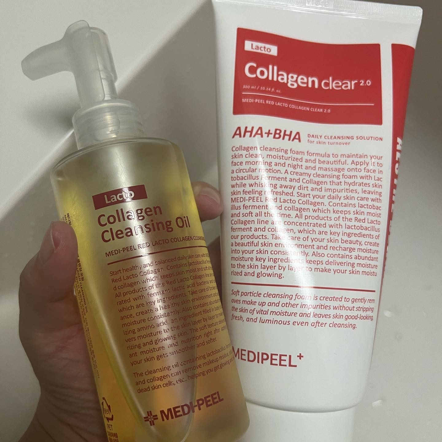 私の大好きなMEDIPEEL🤭🤍 クレンジングオイルは2本は使い切ってるかな😆 結構しっかりメイクな私だけどスルスル落ちるのが好き!乳化も早い✨ 乳酸菌発酵成分とコラーゲン、9種類のペプチドで引き締まった肌に仕上げ、肌の水分バリアを守り、洗顔後もつっぱることなく潤いを与えてくれる💗 濃密でふわんふわんの泡🥺✨✨✨ 朝でも夜でも使いやすい🤭🤍