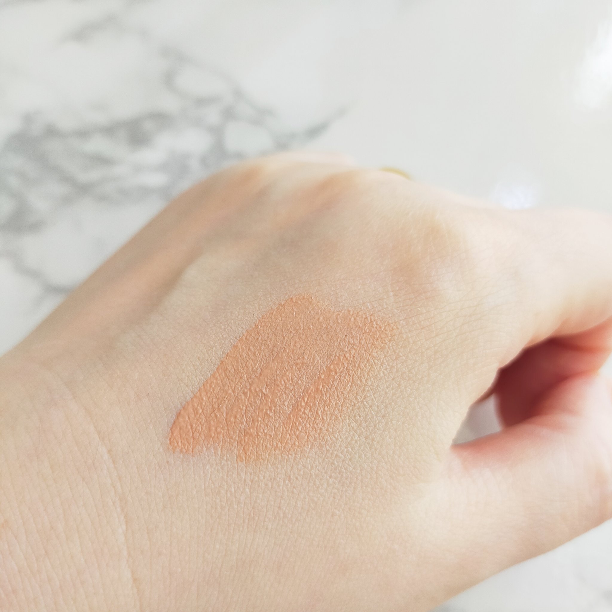 テクスチャーはみずみずしくサラサラ。 べたつかないから、軽いタッチで使えます。(二層式なので使う前に良く振って) ほんのりベージュ色をしていますが、馴染ませるとクリアに。 頬や鼻まわりの赤みや毛穴を整え、ふんわり目立たなくしてくれます。 自分の肌色を選ばず使いやすい所もいいですね。