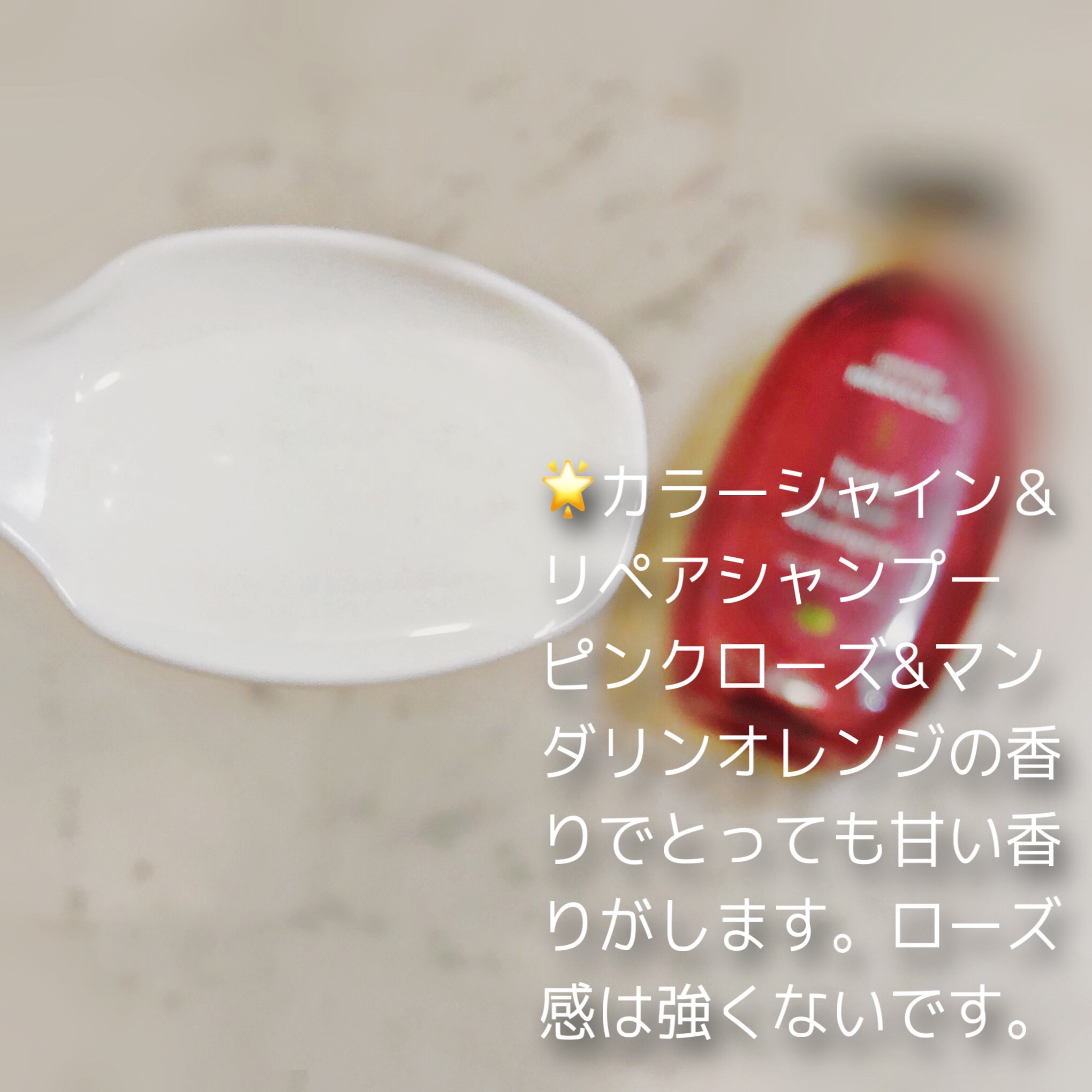 - 2024年11月1日~パッケージリニューアル カラー後の色落ち防止*・ダメージケアに色落ちを引き起こす蓄積ダメージを繊維レベルで補修し、色つや髪へ。 +4 週間、綺麗な髪色長持ち*。 ピンクローズ&マンダリンオレンジの香り。 *:カラーシャイン&リペアヘアマスクを含むシリーズ使いによる