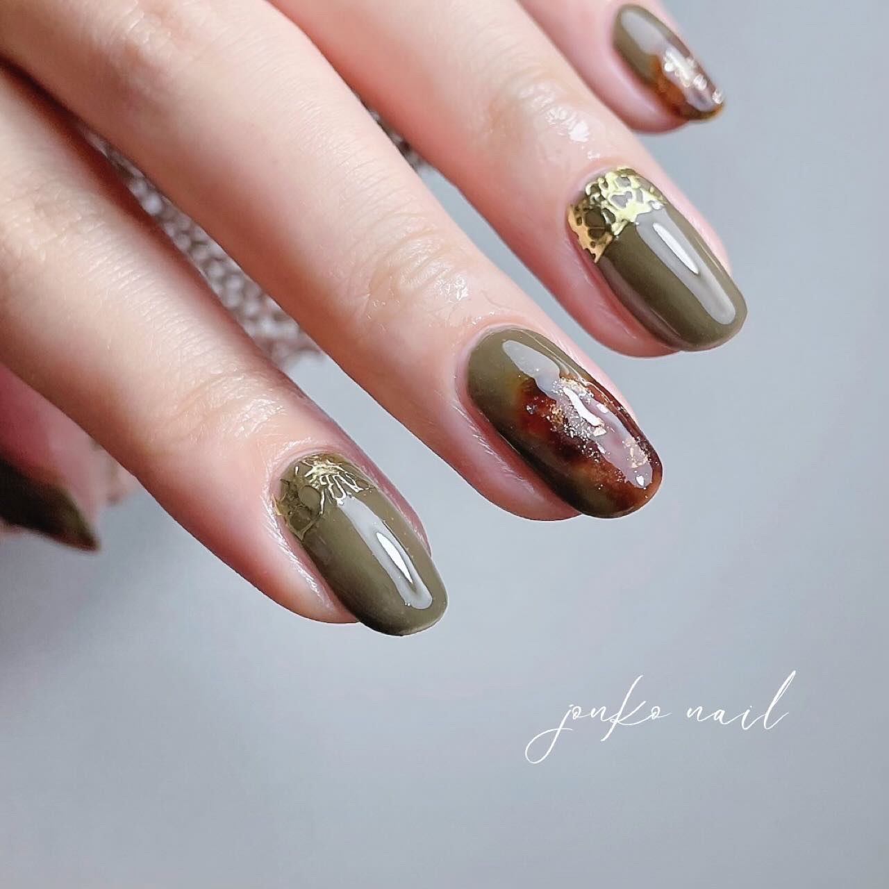 電車に乗っていたら向かいの可愛いお姉さんがこんな配色でネイルしてたんです☺️ それがどうにも可愛いくて…♡ 次のネイルは決まり!って思って スマホに「オレンジ、カーキ、アイボリー」ってメモしちゃいましたᝰ✍︎꙳⋆ こんな配色は自分では思いつかないなぁ🥺