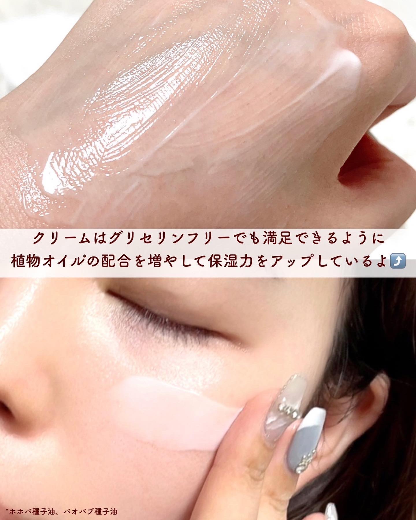 - LDK受賞の商品が、2種のヒト幹ペプチド(*1)を新配合してリニューアル! 憧れのノーファンデメイクへ!「もちツヤ肌」に導くスキンケア ※旧製品にて受賞:LDK the Beauty 2022年5月号 化粧水&乳液エイジングケアライン第1位 POINT .1 ダブルうるおい処方で、長時間保湿(*2)を実現! 肌の奥(*3)で、時間差で水分を解き放つダブルうるおい処方&ペンタバイティン(*4)(異性化糖)配合でうるおいが持続、肌を長時間保湿(*2)します。 POINT.2 リポソーム化で、肌の奥(*3)まで浸透(*5)! 肌にやさしいヒト幹細胞(*6)と6種のセラミド(*7)を、浸透しやすいようにカプセルで包み込み小さくする“リポソーム化”によって、キー成分がより肌の奥(*3)までしっかり届くようにしました。 POINT .3 うるおうのにべたつきにくい、こだわり設計! 肌表面のべたつきが苦手な方にもお使いいただけるこだわり設計で、肌の奥(*3)はうるおいながら表面のべたつきはおさえるテクスチャーを実現。 <9つのフリー> グリセリン、パラベン、シリコン、鉱物油、合成香料、合成着色料、石油系界面活性剤、エタノール、紫外線吸収剤 不使用 クリームはグリセリンフリーでも保湿力に満足いただけるよう植物オイル(*8)の配合を増やし工夫しました。 *1 ヒト幹細胞順化培養液(整肌) 、ヒト脂肪由来間葉系細胞エクソソーム(整肌) *2 ビオサッカリドガム-1(保湿) *3 角層まで *4 ペンタバイティン(PENTAVITIN®)は、DSM IP Assets B.V.の登録商標です *5 角層まで *6 ヒト幹細胞順化培養液(整肌) *7 セラミドEOP 、セラミドNP 、セラミドAP 、セラミドAG 、セラミドNG 、グルコシルセラミド(全て保湿) *8 ホホバ種子油(保湿) 、バオバブ種子油(エモリエント剤)