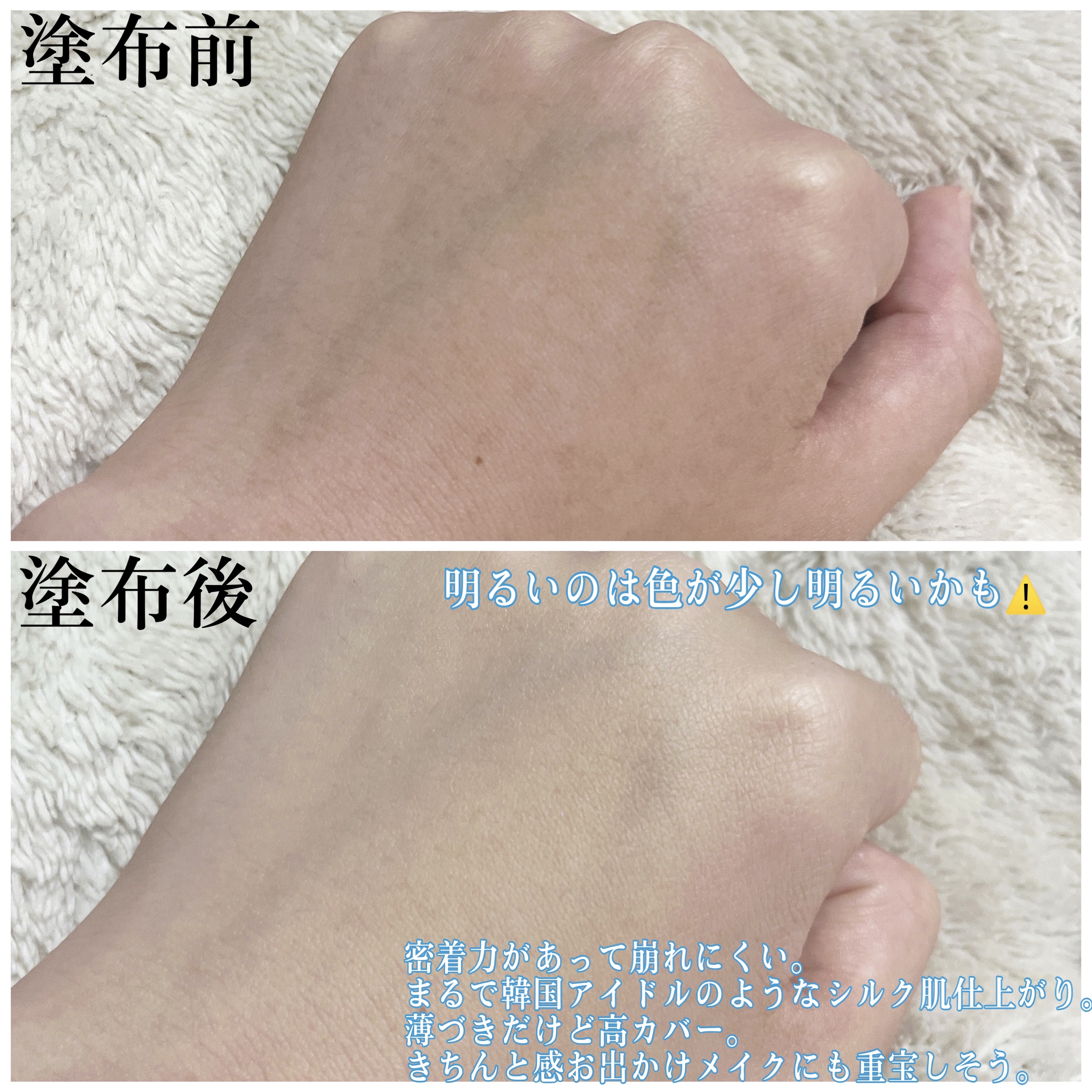 - <15 ロージー> 水、酸化チタン、ジメチコン、安息香酸アルキル(C12-15)、プロパンジオール、イソドデカン、ジ安息香酸PG、ラウリルPEG-9ポリジメチルシロキシエチルジメチコン、シクロペンタシロキサン、グリセリン、ナイアシンアミド、シリカ、1,2-ヘキサンジオール、ポリグリセリル-3ポリジメチルシロキシエチルジメチコン、(アクリレーツ/メタクリル酸ポリトリメチルシロキシ)コポリマー、パルミチン酸デキストリン、トリメチルシロキシケイ酸、カプリリルメチコン、酸化鉄、セチルPEG/PPG-10/1ジメチコン、ジステアルジモニウムヘクトライト、硫酸Mg、オクチルドデカノール、(アクリレーツ/アクリル酸ステアリル/メタクリル酸ジメチコン)コポリマー、ポリメチルシルセスキオキサン、合成フルオロフロゴパイト、ステアリン酸、トリエトキシカプリリルシラン、アルミナ、水酸化Al、イソステアリン酸ポリグリセリル-4、ポリヒドロキシステアリン酸、アデノシン、エチレンジアミンジコハク酸3Na、トリイソステアリン酸イソプロピルチタン、ジエチルヘキサン酸ネオペンチルグリコール、サファイア末、トコフェロール、テトラ(ジ-t-ブチルヒドロキシヒドロケイヒ酸)ペンタエリスリチル <17 ポーセリン> 水、酸化チタン、ジメチコン、安息香酸アルキル(C12-15)、プロパンジオール、イソドデカン、ジ安息香酸PG、ラウリルPEG-9ポリジメチルシロキシエチルジメチコン、シクロペンタシロキサン、グリセリン、ナイアシンアミド、シリカ、1,2-ヘキサンジオール、ポリグリセリル-3ポリジメチルシロキシエチルジメチコン、(アクリレーツ/メタクリル酸ポリトリメチルシロキシ)コポリマー、パルミチン酸デキストリン、トリメチルシロキシケイ酸、カプリリルメチコン、酸化鉄、セチルPEG/PPG-10/1ジメチコン、ジステアルジモニウムヘクトライト、硫酸Mg、オクチルドデカノール、(アクリレーツ/アクリル酸ステアリル/メタクリル酸ジメチコン)コポリマー、ポリメチルシルセスキオキサン、合成フルオロフロゴパイト、ステアリン酸、トリエトキシカプリリルシラン、アルミナ、水酸化Al、イソステアリン酸ポリグリセリル-4、ポリヒドロキシステアリン酸、アデノシン、エチレンジアミンジコハク酸3Na、トリイソステアリン酸イソプロピルチタン、ジエチルヘキサン酸ネオペンチルグリコール、サファイア末、トコフェロール、テトラ(ジ-t-ブチルヒドロキシヒドロケイヒ酸)ペンタエリスリチル <21 アイボリー> 水、酸化チタン、ジメチコン、安息香酸アルキル(C12-15)、プロパンジオール、イソドデカン、ジ安息香酸PG、ラウリルPEG-9ポリジメチルシロキシエチルジメチコン、シクロペンタシロキサン、グリセリン、ナイアシンアミド、シリカ、酸化鉄、1,2-ヘキサンジオール、ポリグリセリル-3ポリジメチルシロキシエチルジメチコン、(アクリレーツ/メタクリル酸ポリトリメチルシロキシ)コポリマー、パルミチン酸デキストリン、トリメチルシロキシケイ酸、カプリリルメチコン、セチルPEG/PPG-10/1ジメチコン、ジステアルジモニウムヘクトライト、オクチルドデカノール、硫酸Mg、(アクリレーツ/アクリル酸ステアリル/メタクリル酸ジメチコン)コポリマー、ポリメチルシルセスキオキサン、合成フルオロフロゴパイト、ステアリン酸、トリエトキシカプリリルシラン、アルミナ、水酸化Al、イソステアリン酸ポリグリセリル-4、ポリヒドロキシステアリン酸、トリイソステアリン酸イソプロピルチタン、アデノシン、エチレンジアミンジコハク酸3Na、ジエチルヘキサン酸ネオペンチルグリコール、サファイア末、トコフェロール、テトラ(ジ-t-ブチルヒドロキシヒドロケイヒ酸)ペンタエリスリチル <23 サンド> 水、酸化チタン、ジメチコン、安息香酸アルキル(C12-15)、プロパンジオール、イソドデカン、ジ安息香酸PG、ラウリルPEG-9ポリジメチルシロキシエチルジメチコン、酸化鉄、シクロペンタシロキサン、グリセリン、ナイアシンアミド、シリカ、1,2-ヘキサンジオール、ポリグリセリル-3ポリジメチルシロキシエチルジメチコン、(アクリレーツ/メタクリル酸ポリトリメチルシロキシ)コポリマー、パルミチン酸デキストリン、トリメチルシロキシケイ酸、オクチルドデカノール、カプリリルメチコン、セチルPEG/PPG-10/1ジメチコン、ジステアルジモニウムヘクトライト、硫酸Mg、(アクリレーツ/アクリル酸ステアリル/メタクリル酸ジメチコン)コポリマー、ポリメチルシルセスキオキサン、合成フルオロフロゴパイト、ステアリン酸、トリエトキシカプリリルシラン、アルミナ、水酸化Al、イソステアリン酸ポリグリセリル-4、ポリヒドロキシステアリン酸、トリイソステアリン酸イソプロピルチタン、アデノシン、エチレンジアミンジコハク酸3Na、ジエチルヘキサン酸ネオペンチルグリコール、サファイア末、トコフェロール、テトラ(ジ-t-ブチルヒドロキシヒドロケイヒ酸)ペンタエリスリチル