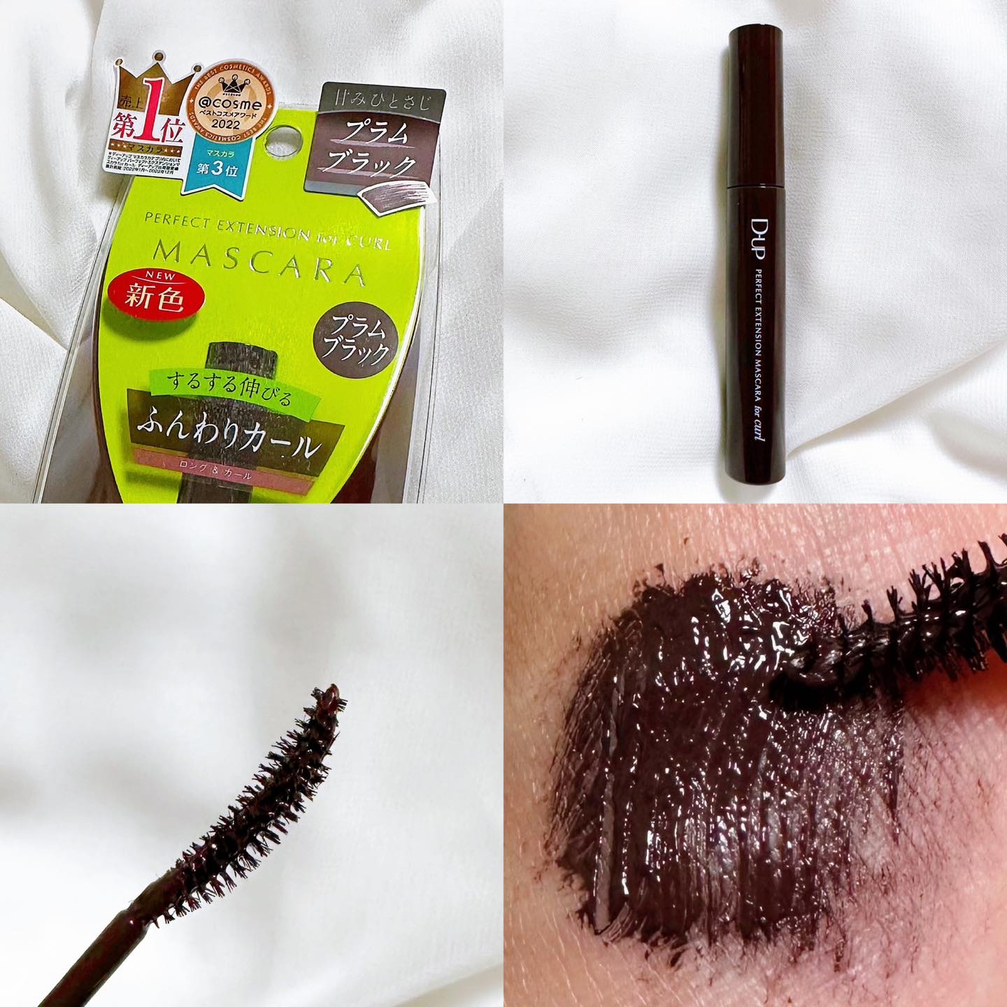 細かい繊維が入っています。 まつ毛長くなります!商品名にカールとついてるだけあってカールキープ力が凄い! プラムブラックという名前の通りパープルです!!!!って感じではなくパープルみのあるブラックなので まつ毛に少し抜け感を出したい方・カラーマスカラに挑戦してみたい方にもオススメです✨