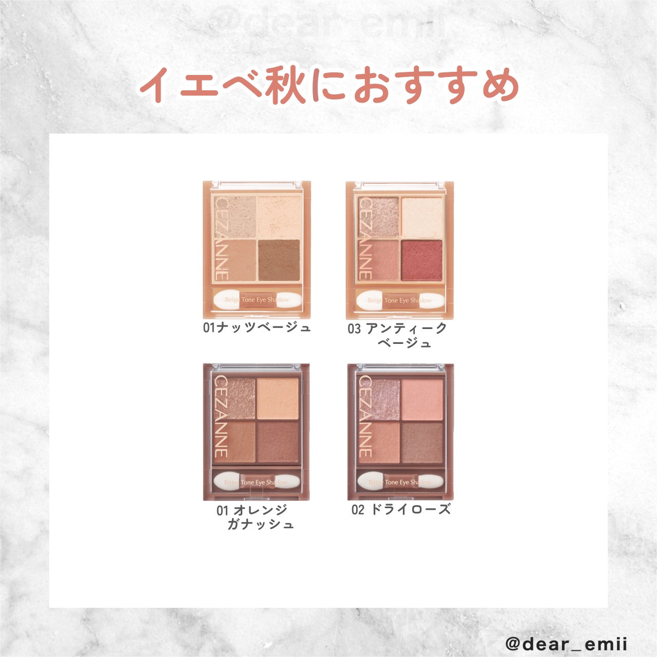 CEZANNEの大人気4色アイシャドウ 3種12色全部紹介✨ お買い物前に参考にしてご購入してみてください! ナチュラルメイクをしたい方におすすめ! 透け感のあるマットな質感と濃厚ブラウンがビターな目元を演出する4色アイシャドウ。 今年の夏に発売されたばかりのセザンヌ初の淡色グラデでソフトな陰影を作る4色アイシャドウに早くも新色のムーンアメジストが発売!