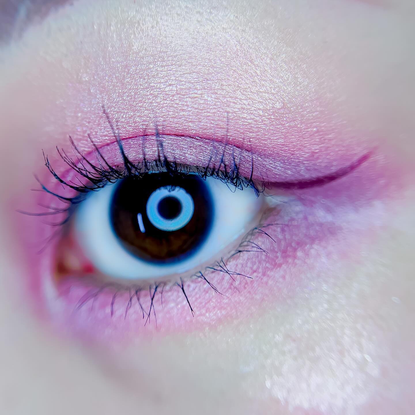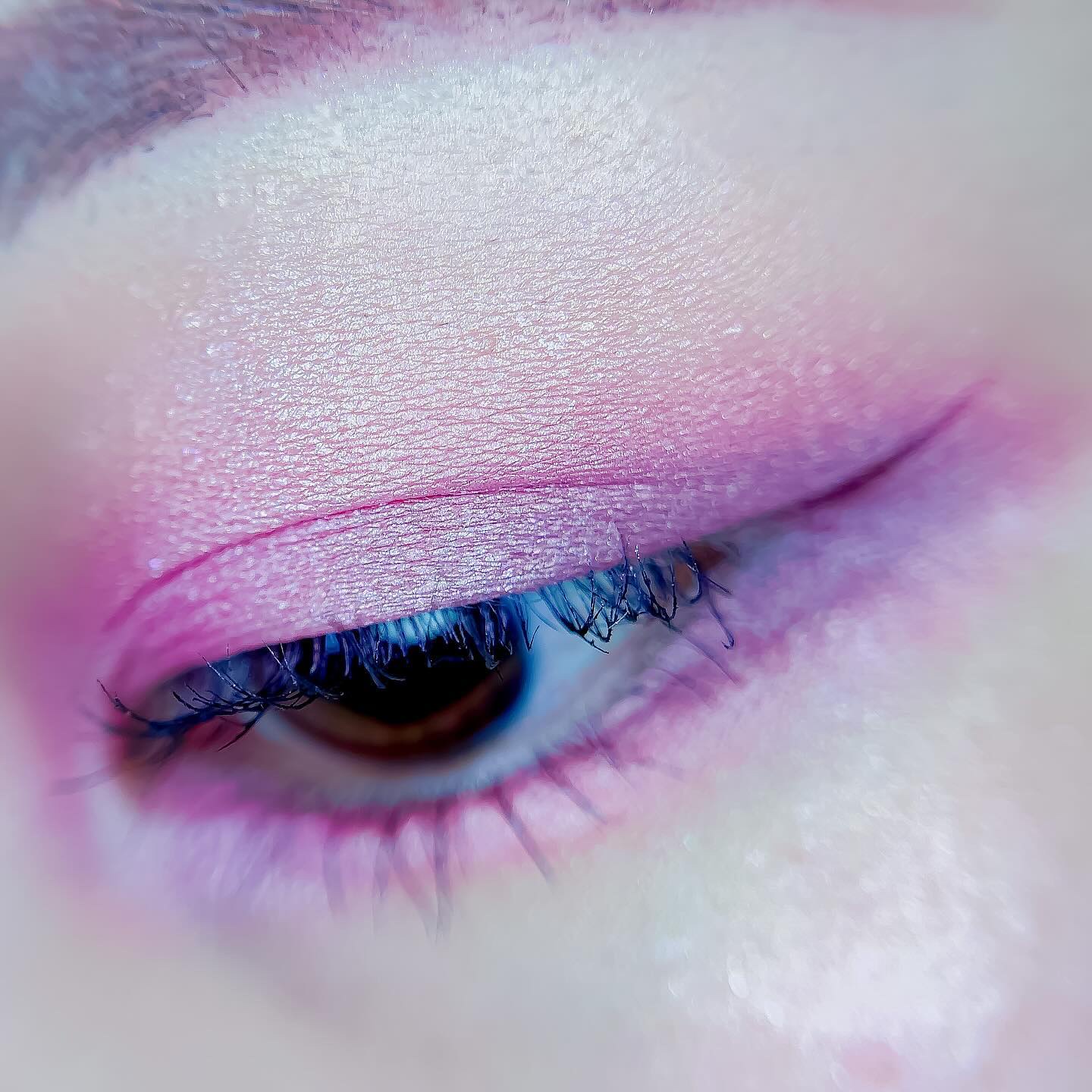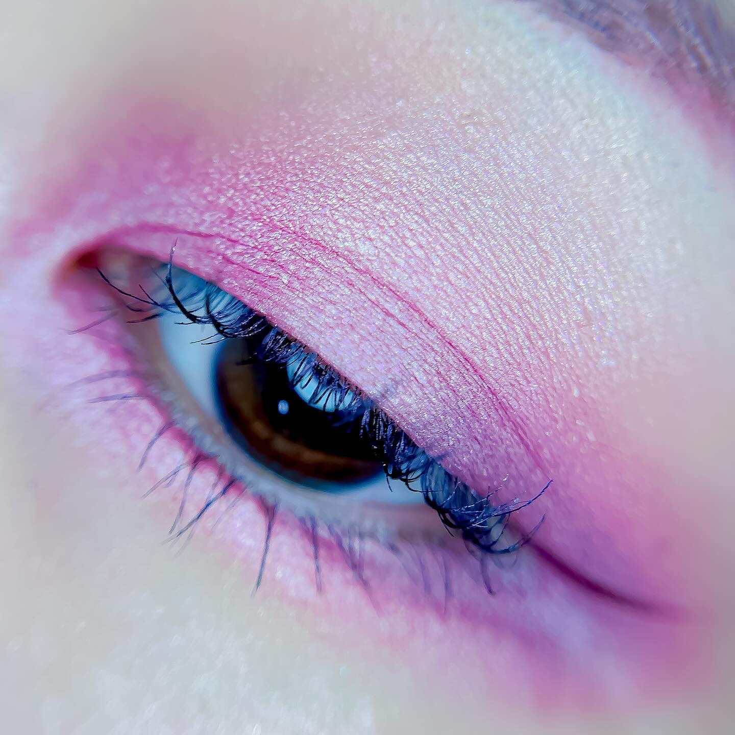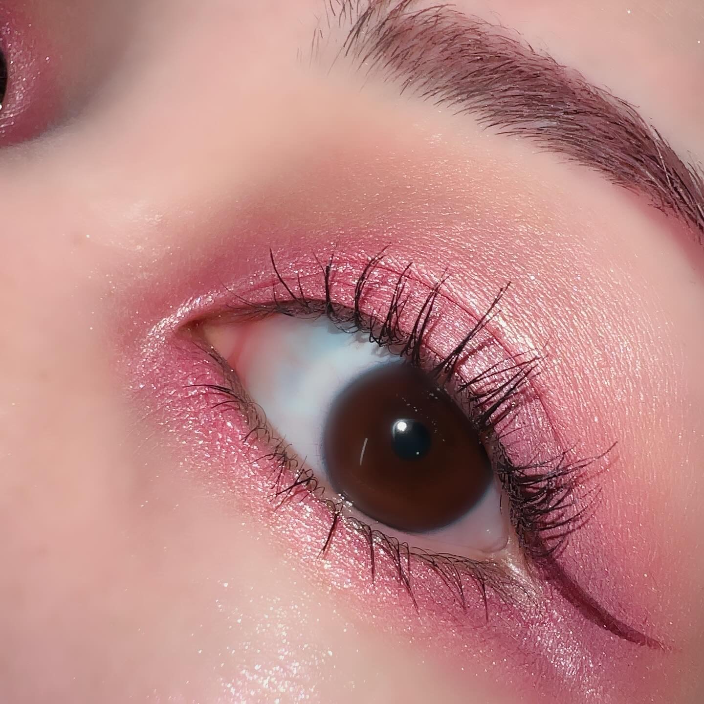 ピンクにグレージュも良いですね👌💗 今日は可愛らしい感じにしてみました💕 上下瞼黒目〜目頭側にラメを塗ってキラキラさせております🤩 目尻はマットのピンクを濃いめに重ねて💗 グレージュのアイライナーと相性◎