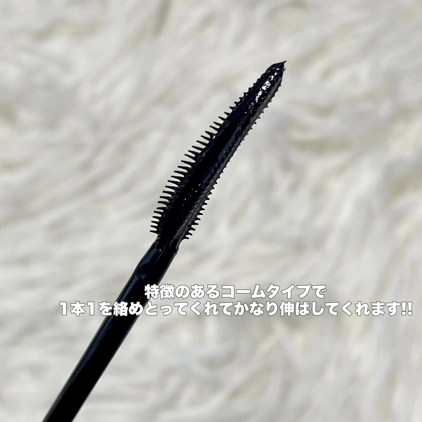 下向きまつ毛のわたしでも 1日中根本から上がった まつ毛がキープできました👏 目立たない下まつ毛もロングになって ぱっちり盛れまつ毛に⤴︎ ブラシが今まで見たことない形で ブラシとコームが合体していました👀 ブラシにしっかりと液がつき コームでとかしながらマスカラが ぬれるのでダマになりにくいです💖 初めての形で不慣れだったので ちょっと瞼についてしまいました💦 マスカラにカールキープを 求めてる方おすすめです☆彡