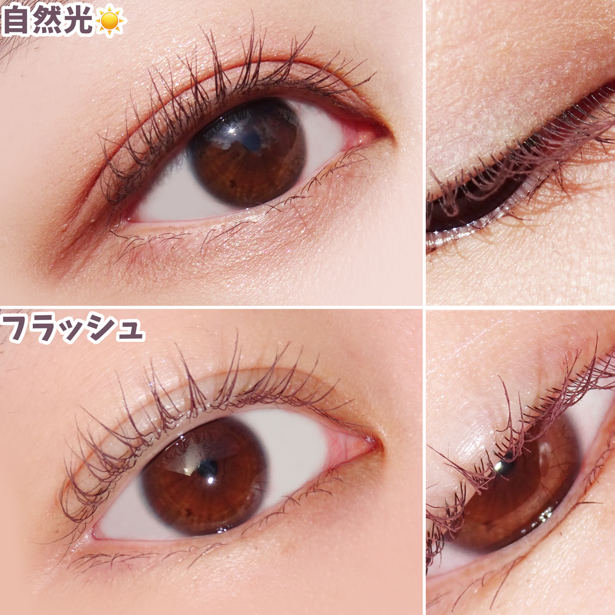チョコレートみたいに甘く仕上がるマスカラ❤︎ お湯+洗顔料オフで普段使いに💭 ウォータープルーフタイプなのにお湯+洗顔料でオフできちゃうマスカラです☺︎ 色味は落ち着いたピンクブラウン系 グレー系も入っているのでメイクを選ばず使いやすいのではないかと思いました❤︎
