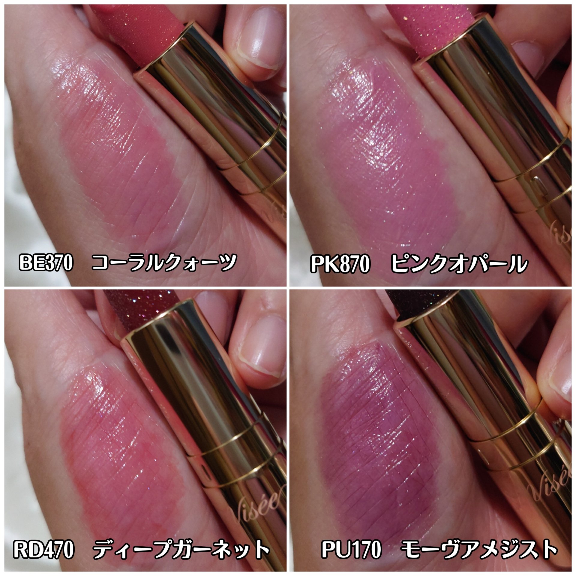 - <BE370 コーラルクォーツ> テトラエチルヘキサン酸ペンタエリスリチル、ダイマージリノール酸(フィトステリル/イソステアリル/セチル/ステアリル/ベヘニル)、トリメリト酸トリトリデシル、リンゴ酸ジイソステアリル、合成ワックス、ポリブテン、トリイソステアリン酸ポリグリセリル-2、ジメチルシリル化シリカ、トコフェロール、モモ核油、ラベンダー油、BHT、DPG、PEG-9ポリジメチルシロキシエチルジメチコン、(アクリル酸/アクリル酸アルキル(C10-30))コポリマー、(エチレン/プロピレン)コポリマー、アルミナ、シリカ、ジメチコン、スクワラン、ハイドロゲンジメチコン、ホウケイ酸(Ca/Al)、メチコン、合成フルオロフロゴパイト、酸化スズ、フェノキシエタノール、酸化チタン、酸化鉄、黄4、赤202、赤218 <OR270 サンストーン> テトラエチルヘキサン酸ペンタエリスリチル、ダイマージリノール酸(フィトステリル/イソステアリル/セチル/ステアリル/ベヘニル)、トリメリト酸トリトリデシル、リンゴ酸ジイソステアリル、合成ワックス、ポリブテン、トリイソステアリン酸ポリグリセリル-2、ジメチルシリル化シリカ、トコフェロール、モモ核油、ラベンダー油、BHT、DPG、PEG-9ポリジメチルシロキシエチルジメチコン、(アクリル酸/アクリル酸アルキル(C10-30))コポリマー、(エチレン/プロピレン)コポリマー、アルミナ、シリカ、ジメチコン、スクワラン、ハイドロゲンジメチコン、ホウケイ酸(Ca/Al)、メチコン、合成フルオロフロゴパイト、酸化スズ、フェノキシエタノール、酸化チタン、酸化鉄、黄4、赤201、赤202、赤218 <PK870 ピンクオパール> テトラエチルヘキサン酸ペンタエリスリチル、ダイマージリノール酸(フィトステリル/イソステアリル/セチル/ステアリル/ベヘニル)、トリメリト酸トリトリデシル、リンゴ酸ジイソステアリル、合成ワックス、ポリブテン、トリイソステアリン酸ポリグリセリル-2、ジメチルシリル化シリカ、トコフェロール、モモ核油、ラベンダー油、BHT、DPG、PEG-9ポリジメチルシロキシエチルジメチコン、(アクリル酸/アクリル酸アルキル(C10-30))コポリマー、(エチレン/プロピレン)コポリマー、アルミナ、シリカ、ジメチコン、スクワラン、ハイドロゲンジメチコン、ホウケイ酸(Ca/Al)、メチコン、合成フルオロフロゴパイト、酸化スズ、フェノキシエタノール、酸化チタン、酸化鉄、黄4、赤202、赤218 <PK871 レッドルビー> テトラエチルヘキサン酸ペンタエリスリチル、ダイマージリノール酸(フィトステリル/イソステアリル/セチル/ステアリル/ベヘニル)、トリメリト酸トリトリデシル、リンゴ酸ジイソステアリル、合成ワックス、ポリブテン、トリイソステアリン酸ポリグリセリル-2、ジメチルシリル化シリカ、トコフェロール、モモ核油、ラベンダー油、BHT、DPG、PEG-9ポリジメチルシロキシエチルジメチコン、(アクリル酸/アクリル酸アルキル(C10-30))コポリマー、(エチレン/プロピレン)コポリマー、アルミナ、シリカ、ジメチコン、スクワラン、ハイドロゲンジメチコン、ホウケイ酸(Ca/Al)、メチコン、合成フルオロフロゴパイト、酸化スズ、フェノキシエタノール、酸化チタン、酸化鉄、黄4、赤202、赤218 <PU170 モーヴアメジスト> テトラエチルヘキサン酸ペンタエリスリチル、ダイマージリノール酸(フィトステリル/イソステアリル/セチル/ステアリル/ベヘニル)、トリメリト酸トリトリデシル、リンゴ酸ジイソステアリル、合成ワックス、ポリブテン、トリイソステアリン酸ポリグリセリル-2、ジメチルシリル化シリカ、トコフェロール、モモ核油、ラベンダー油、BHT、DPG、PEG-9ポリジメチルシロキシエチルジメチコン、(アクリル酸/アクリル酸アルキル(C10-30))コポリマー、(エチレン/プロピレン)コポリマー、アルミナ、シリカ、ジメチコン、スクワラン、ハイドロゲンジメチコン、ホウケイ酸(Ca/Al)、メチコン、合成フルオロフロゴパイト、酸化スズ、フェノキシエタノール、酸化チタン、酸化鉄、黄4、黄5、赤104(1)、赤202、赤218 <RD470 ディープガーネット> テトラエチルヘキサン酸ペンタエリスリチル、ダイマージリノール酸(フィトステリル/イソステアリル/セチル/ステアリル/ベヘニル)、トリメリト酸トリトリデシル、リンゴ酸ジイソステアリル、合成ワックス、ポリブテン、トリイソステアリン酸ポリグリセリル-2、ジメチルシリル化シリカ、トコフェロール、モモ核油、ラベンダー油、BHT、DPG、PEG-9ポリジメチルシロキシエチルジメチコン、(アクリル酸/アクリル酸アルキル(C10-30))コポリマー、(エチレン/プロピレン)コポリマー、アルミナ、シリカ、ジメチコン、スクワラン、ハイドロゲンジメチコン、ホウケイ酸(Ca/Al)、メチコン、合成フルオロフロゴパイト、酸化スズ、フェノキシエタノール、酸化チタン、酸化鉄、黄4、黄5、赤104(1)、赤202、赤218