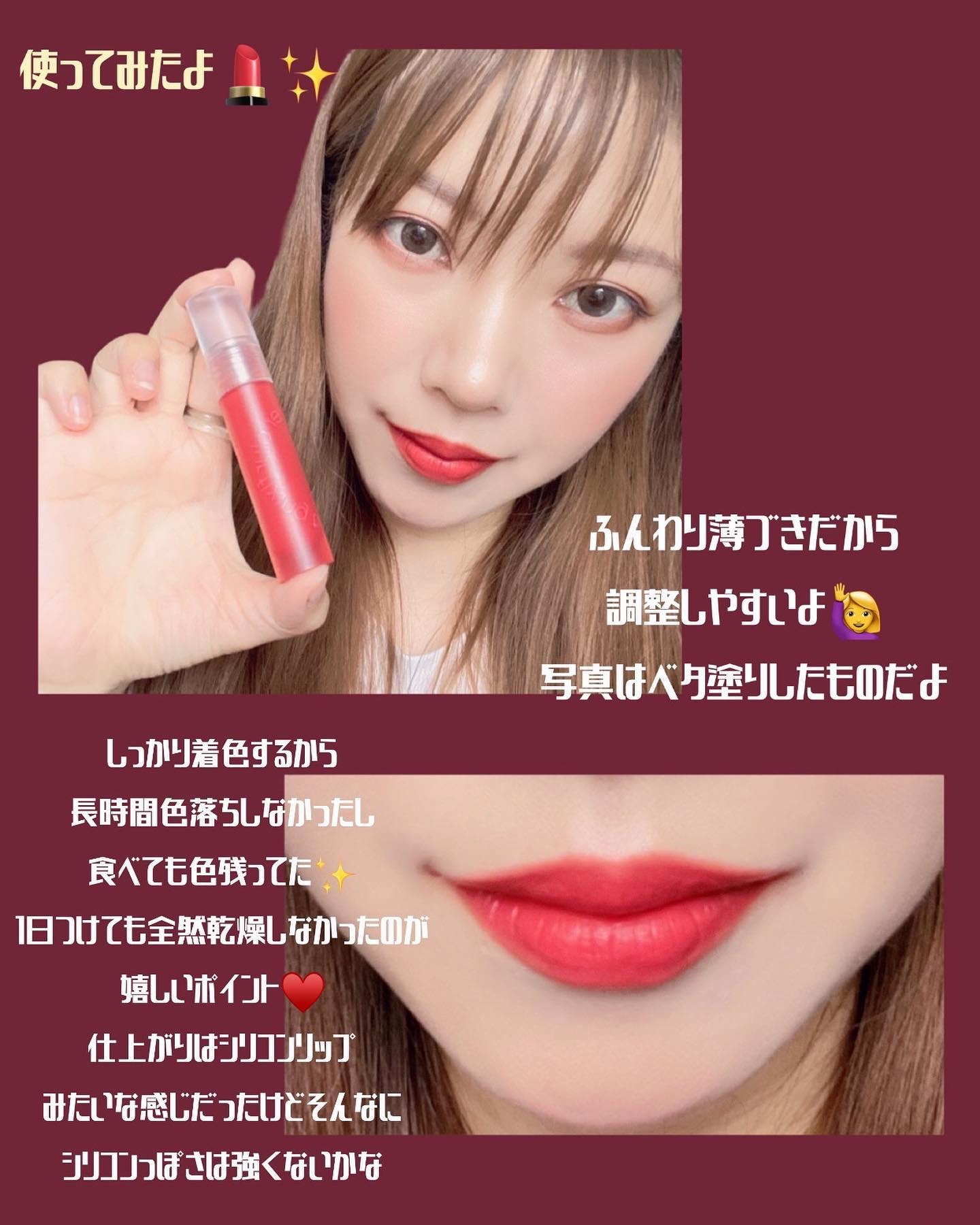 | 口紅・グロス・リップライナーランキング第44位 | 乾燥しにくく、艶感をキープしてくれて、ティント特有の色持ちも良く、ぷるっとしたジューシーな唇に仕上がります | 詳細を見る | |