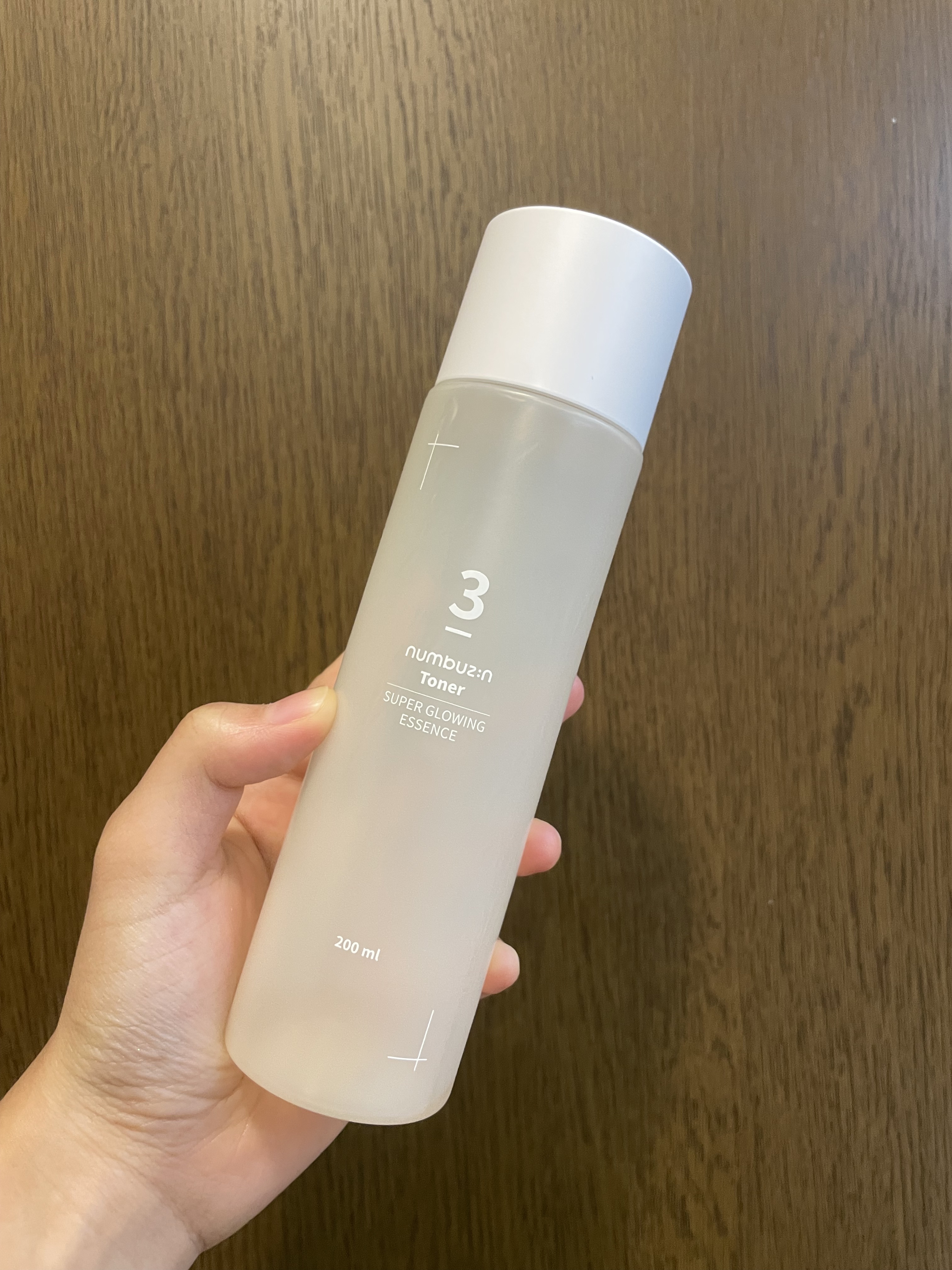 「ナンバーズイン 3番 うるツヤ発酵トナー」を使ってみました。表面と裏面が白色で、側面が鮮やかな黄色のパッケージでした。表面にトナーの絵が描かれているのが印象的でした。開けてみると、表面に描かれた形のトナーが出てきました。透明な黄色のボトルで...