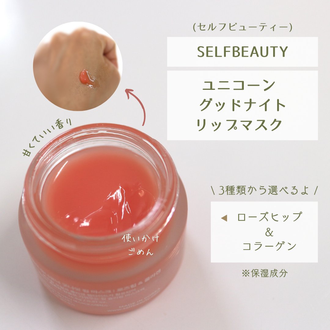 商品詳細情報SELF BEAUTY ユニコーングッドナイトリップマスク ローズヒップ&コラーゲン