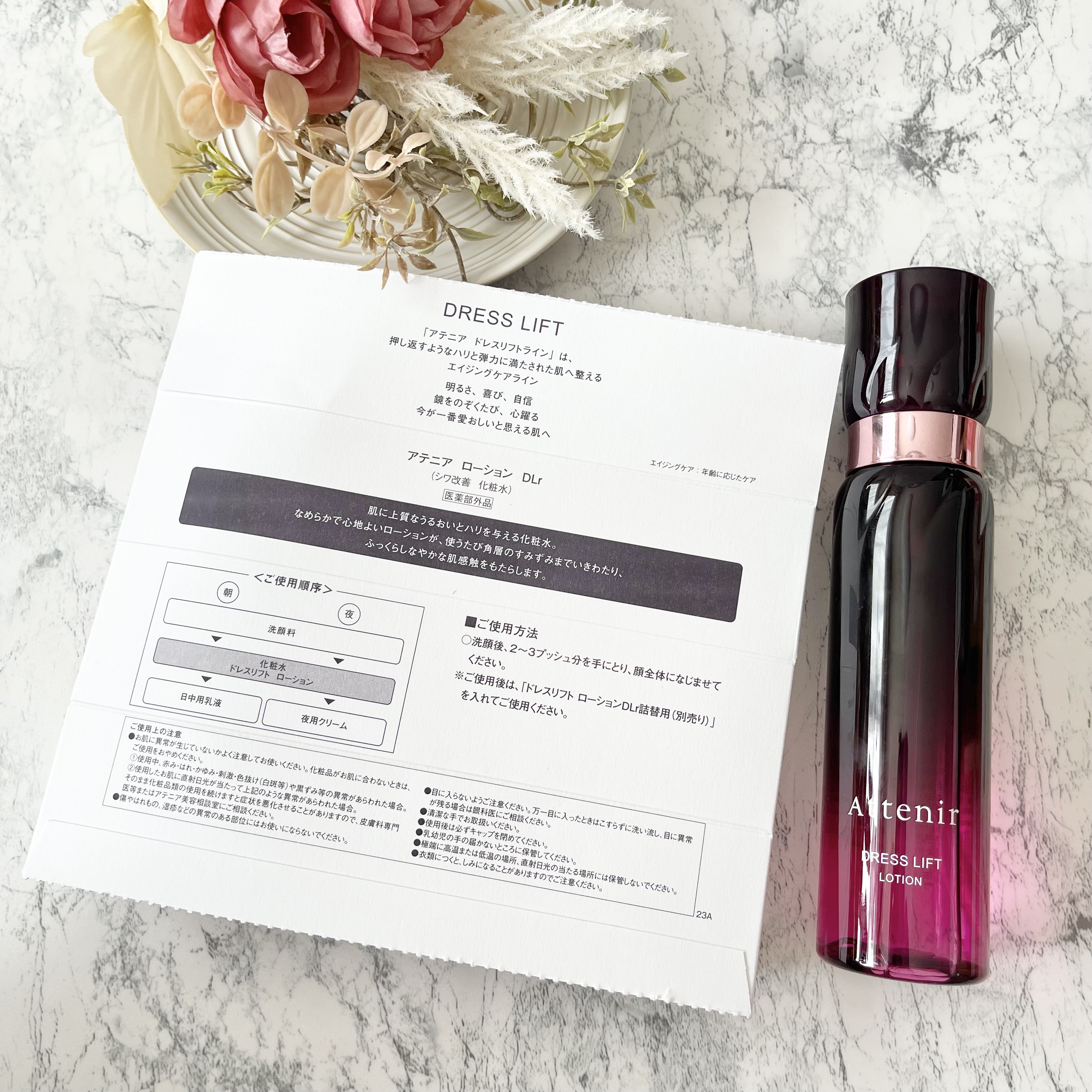 - 【医薬部外品】 [販売名:アテニア ローション DLr] 肌に上質なうるおいとハリを与える化粧水。 なめらかで心地よいローションが、使うたび角層のすみずみまでいきわたり、 ふっくらしなやかな肌感触をもたらします。