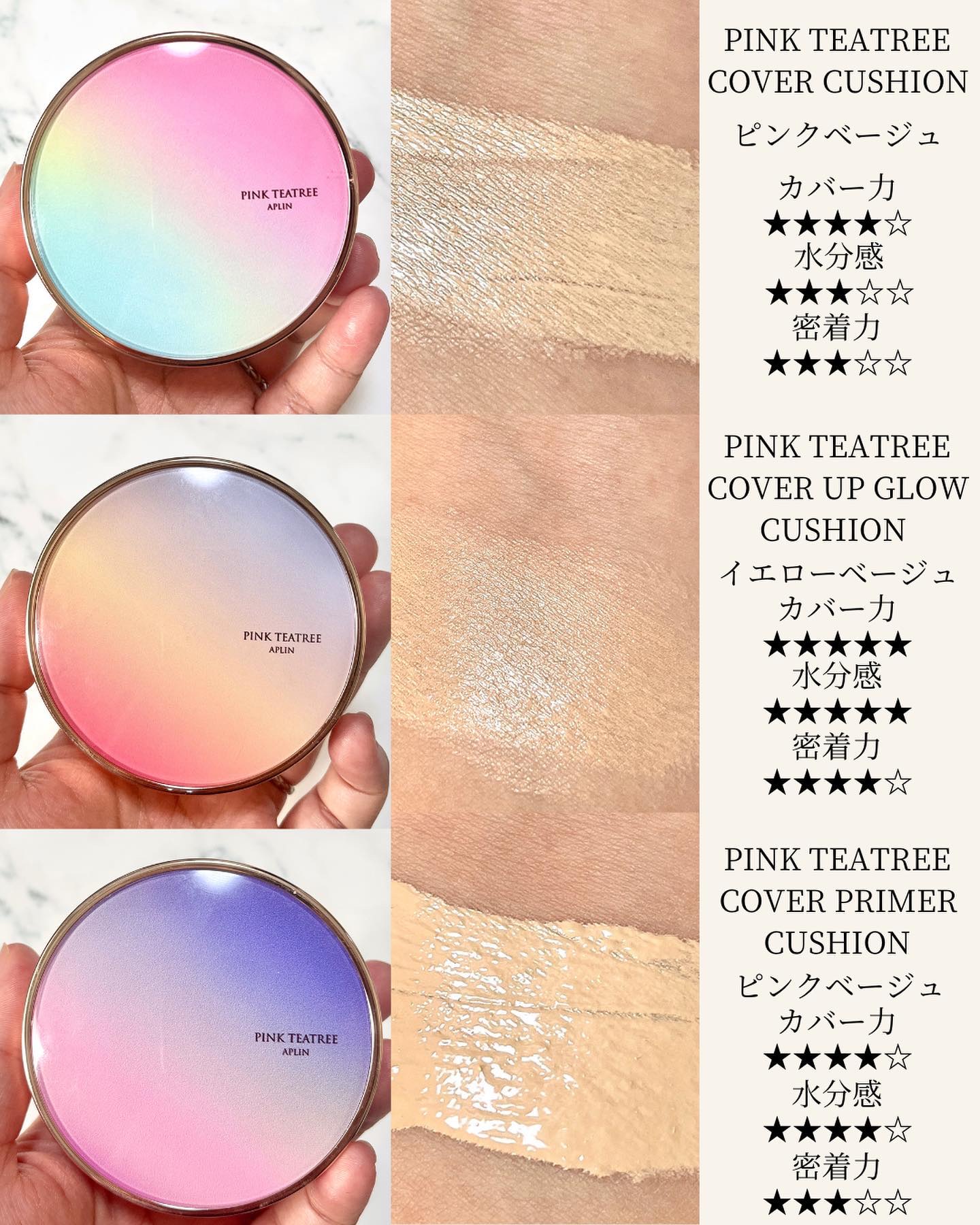 ケアしながらメイクアップ!夏にも冬にも使えるクッションファンデーション APLIN ピンクティーツリープライマーカバークッション 密着力がすごくて、夏の崩れやすい時期も汚く崩れる事がなかったし、乾燥の気になる今は、パサつきを感じずに両方の季節で使い心地が良かったです♪ ピンクのパッケージも可愛くてお気に入り💓 これでティーツリーやシカでケアができてるのならかなりのいいアイテムかな思いました!
