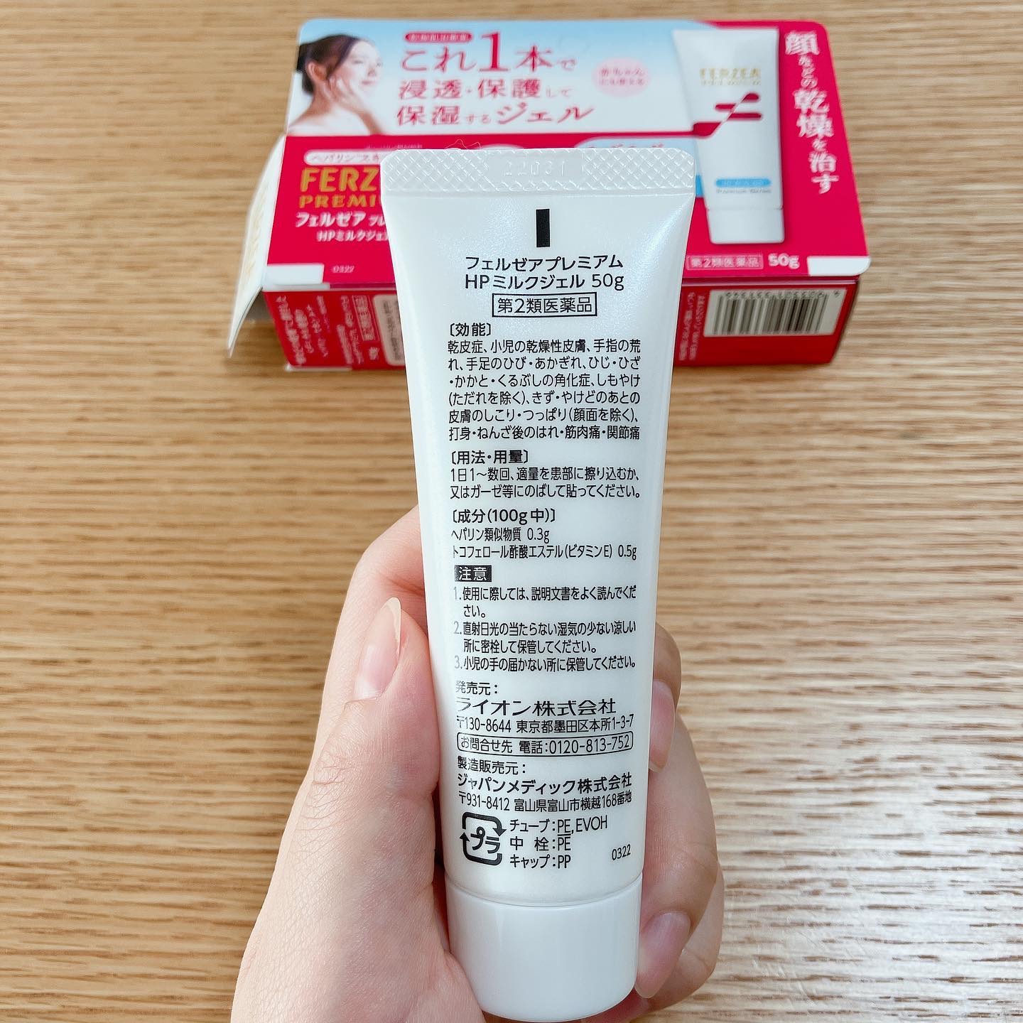 白地に赤に近いピンク色で模様が描かれたチューブ型容器に入ってます。 ミルクジェルなので、とろんとしたテクスチャー。 みずみずしくベタつかない感じで、サッと伸ばしやすかったです♪