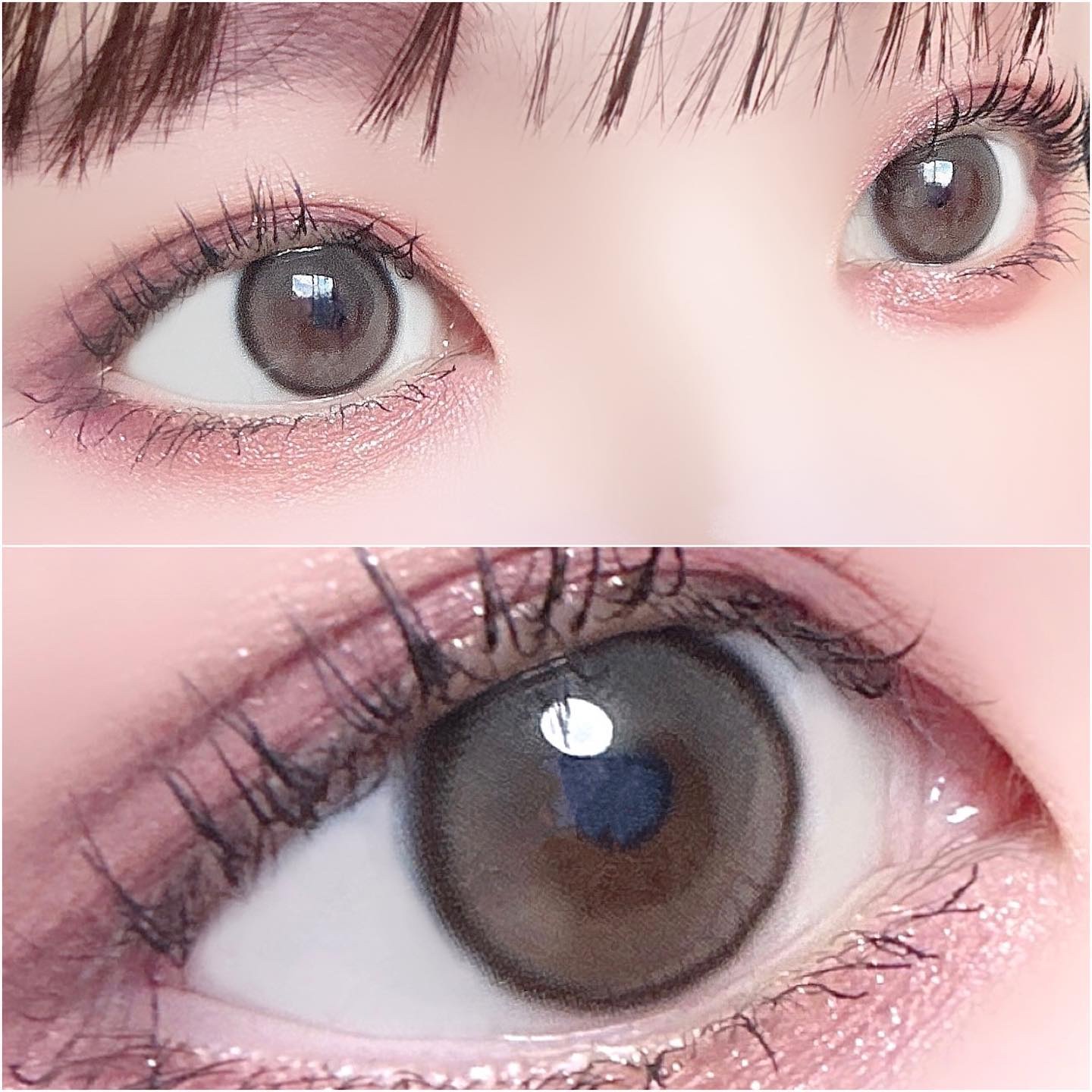 明るめのキャラメルブラウンカラー🍪🤎 透明感もあるので、派手にならず自然にトーンアップした仕上がりになりました🫶🏻ˊ˗ くすみのある透明感グレー発色🩶✨ フチはチャコール系のカラーで、ナチュラルに瞳の印象をアップしてくれます◎ 老若男女問わず使いやすいカラコンです💪🏻