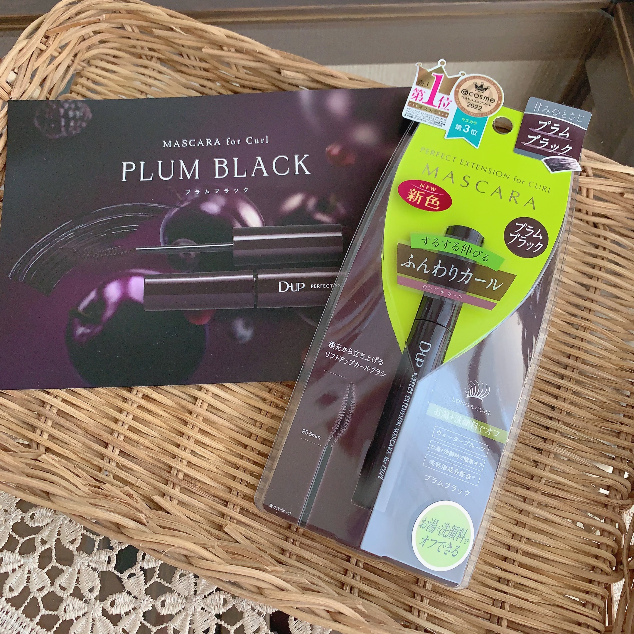 細かい繊維が入っています。 まつ毛長くなります!商品名にカールとついてるだけあってカールキープ力が凄い! プラムブラックという名前の通りパープルです!!!!って感じではなくパープルみのあるブラックなので まつ毛に少し抜け感を出したい方・カラーマスカラに挑戦してみたい方にもオススメです✨