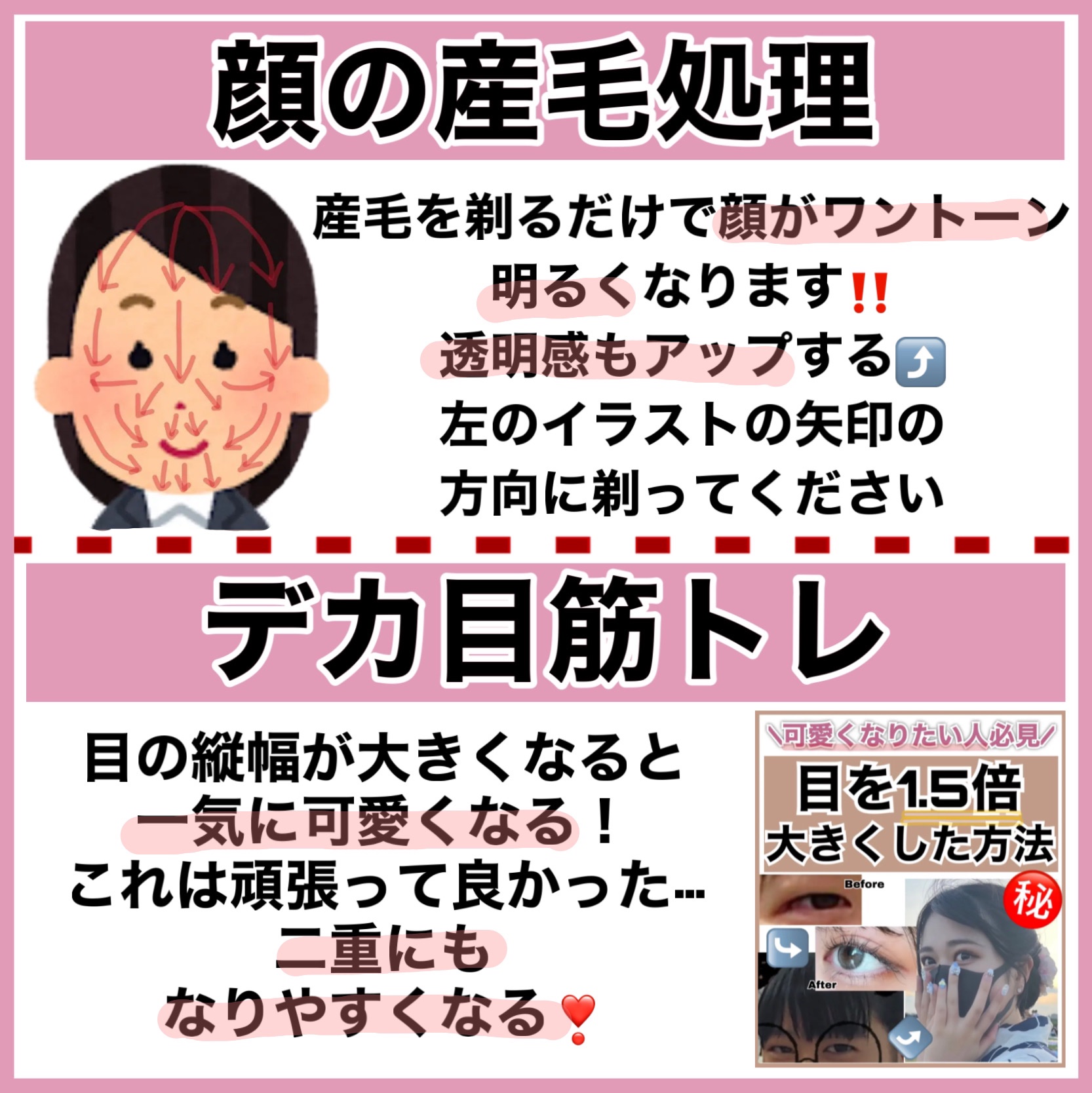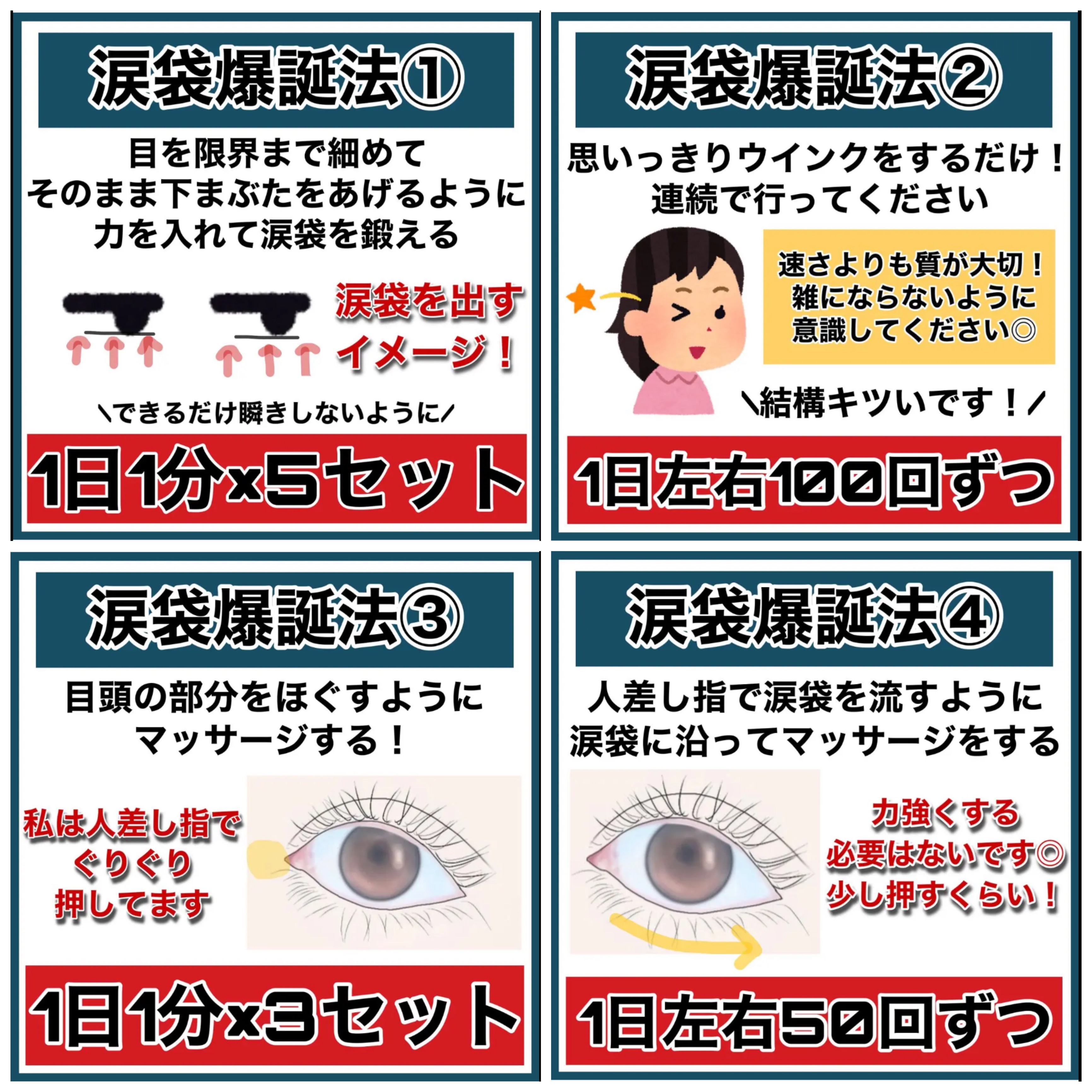 【瞼の筋トレ】について詳しく解説!!これさえすれば絶対変われます!!!瞼の筋トレって?という方は、画像をご覧下さい‼️これがないと私は今頃二重になってなかった…と言っても過言ではないくらい、私の癖付けには欠かせなかったものです!!今回は、昔からしている筋トレ1つと、最近思いついて実践している筋トレ2つをご紹介します!!どれもすごく簡単なので、ぜひ試してみてください📷Q 一日どのくらいしてた?A とにかく暇さえあればしていました!!1日30分の日もあれば、何時間もする日もありましたこの筋トレは、お風呂に入りながらや勉強しながら、スマホ見ながらでもできるのがいいところなので、スキマ時間を上手く活用するのがいいかな思います💭Q 今まで何回くらい筋肉痛になった?A 左右どちらも5回くらいだと思います!瞼が私より軽い方は、1、2回で十分スッキリすると思いますよ❣️Q どれくらいで筋肉痛になった?A 筋肉痛までは平均して2週間くらいかかりました!でもフォロワーさんの中には1日でなられた方も多くいらっしゃいますなのでその人の瞼や頑張り次第だと思います❣️Q 筋トレ1