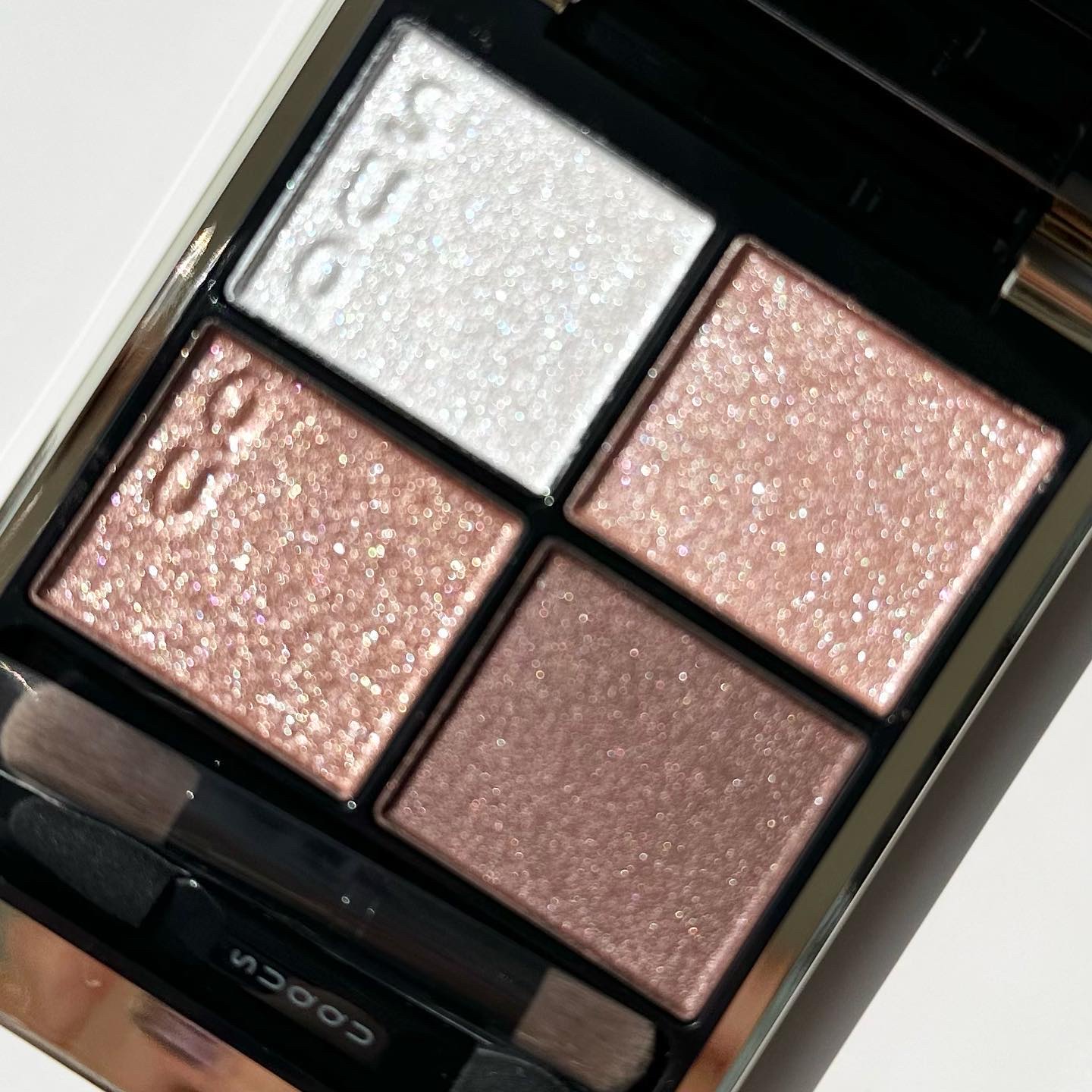 アイシャドウは実物の方が相当可愛い! 特に左上のラメの破壊力、、、 左側ボルドーは本当にふんわりと。 その上から右側のライラック?ピンクを 乗せると透明感爆発でした🥹👏🏻 本当にSUQQUは裏切らない可愛さ。 4月に発売されるもう一色のシグニチャーも、 5月発売のサマーもしっかり買うよ☺️❤️🔥