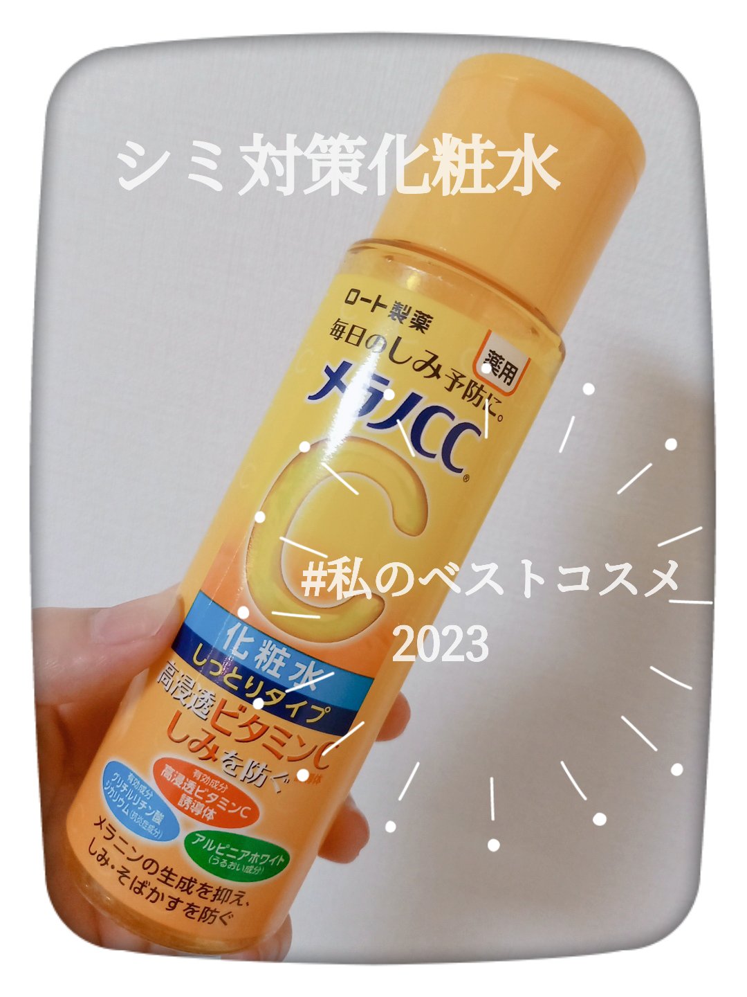 - 「メラノCC 薬用しみ対策 美白化粧水 しっとりタイプ」は、顔全体にうるおいを与えながら、しみ対策できる薬用美白化粧水。 美白有効成分の高浸透ビタミンC誘導体*1が角質層のすみずみまで浸透し、メラニンの生成を抑え、しみ・そばかすを防ぎ、透明感のある肌へと導きます。 また、抗炎症成分*2と3種のうるおい成分*3を配合。ニキビ痕が気になる肌にもうるおいを与え、肌を整えます。 さわやかな柑橘系の香りです。 *1:3-O-エチルアスコルビン酸 *2:グリチルリチン酸ジカリウム *3:アルピニアホワイト、レモンエキス、グレープフルーツエキス