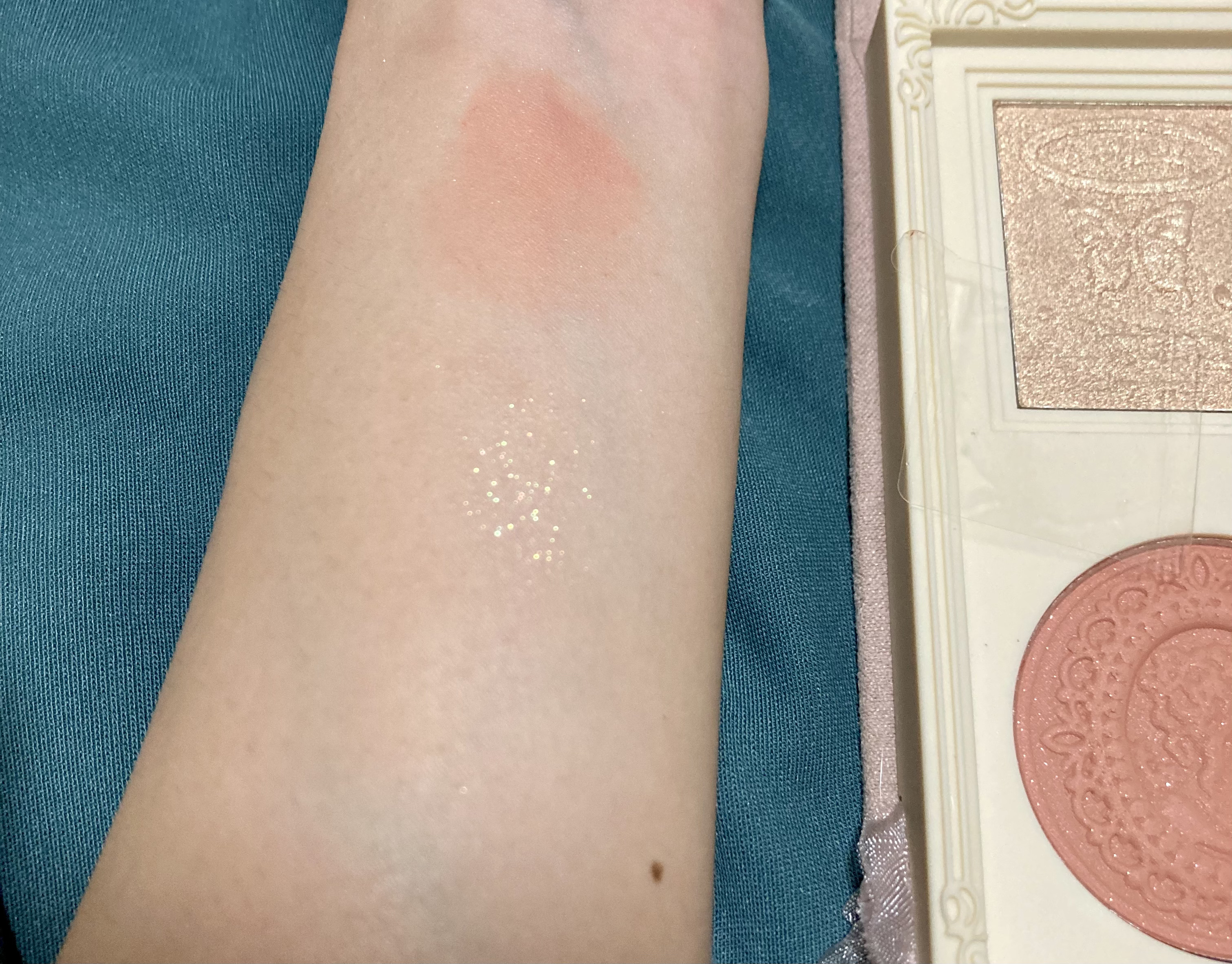 透明感爆誕!キャンメイクの新作チーク P05 ペールライラック 青み強めのピンクでブルベさんにおすすめ。 (肌に塗ってみると色は薄づきでキラキラ感が強めなので、イエベさんも使いやすそう) 量の調節もしやすいのでメイク初心者さんにもおすすめ。