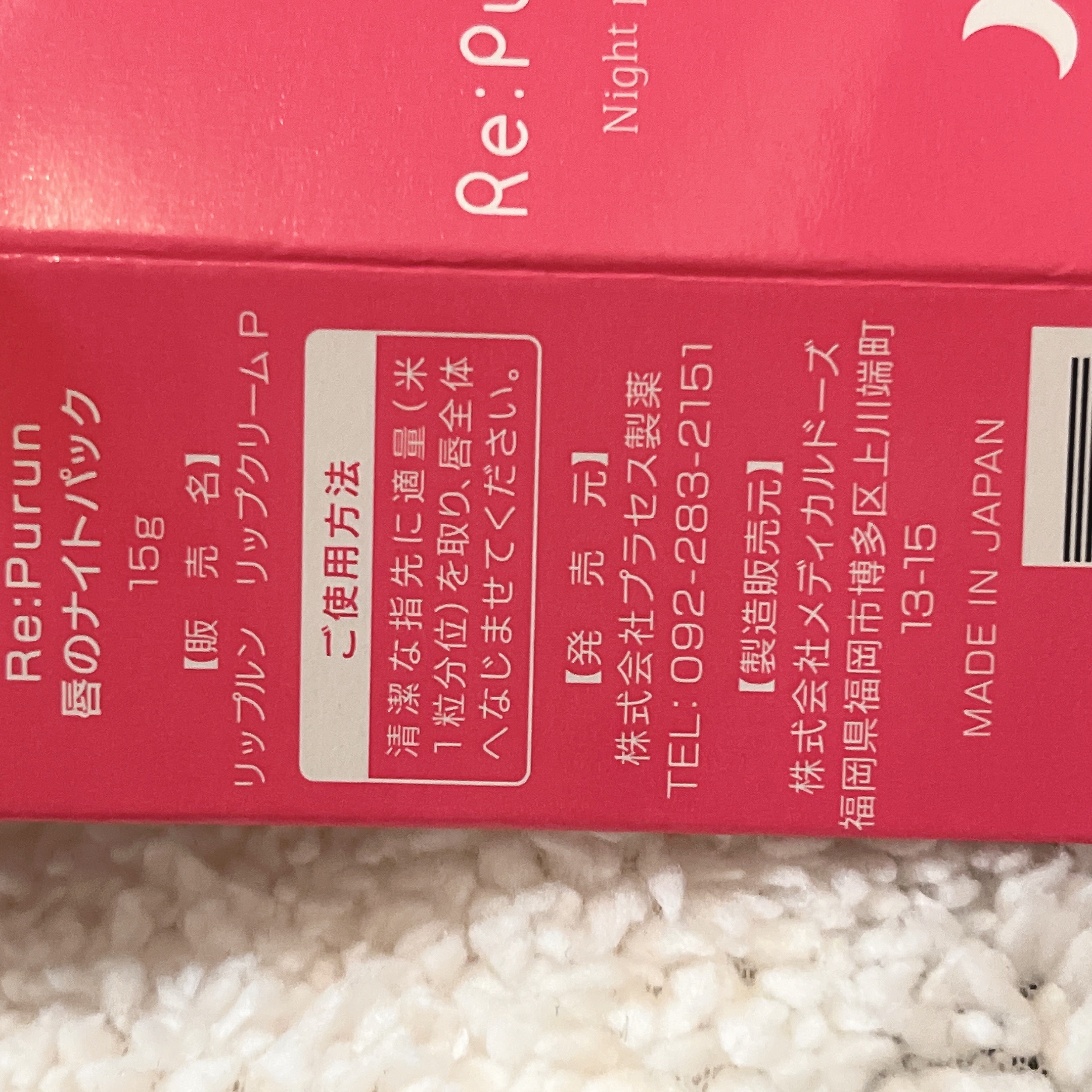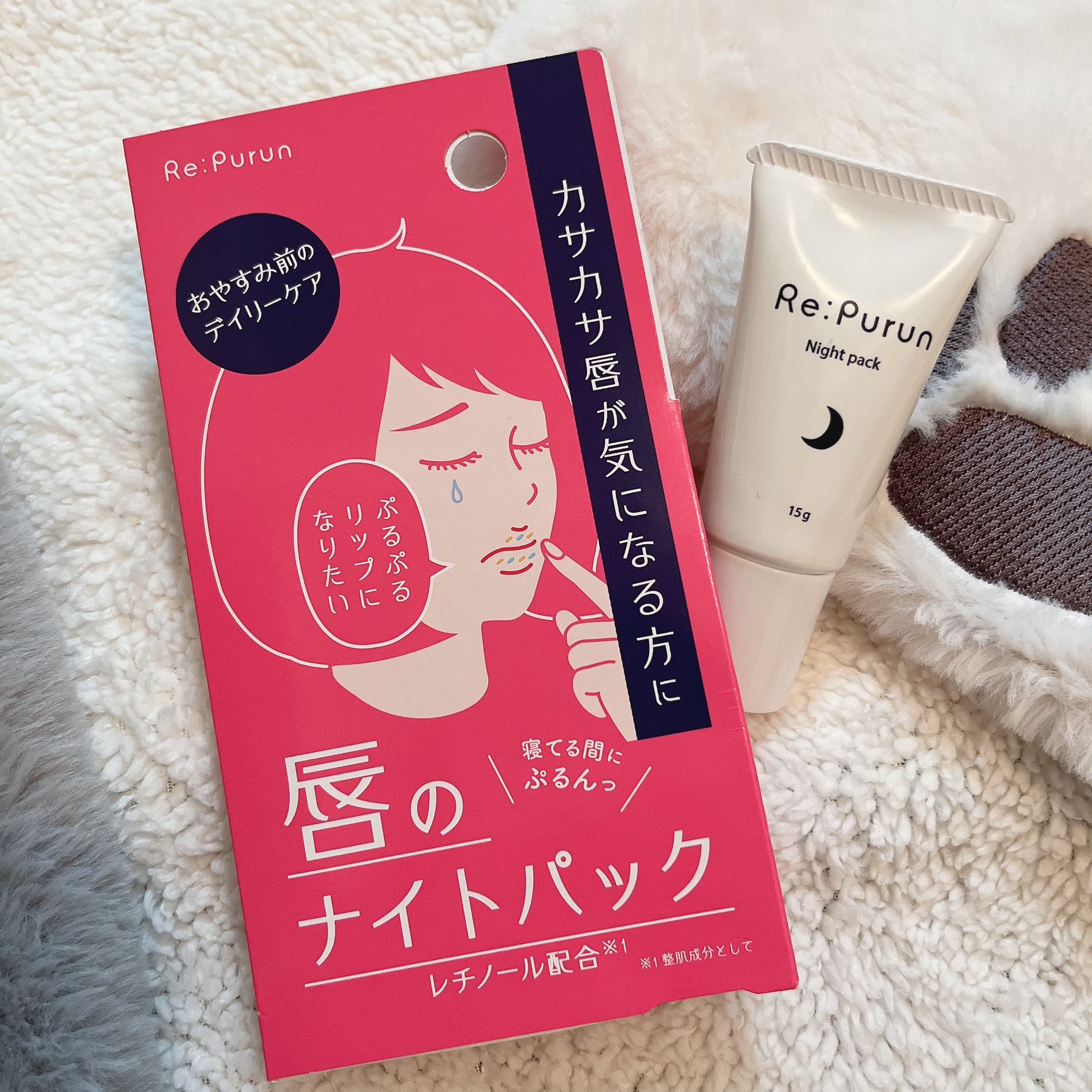 - <レチノール配合!寝ている間に唇を集中保湿> 「Re:Purun 唇のナイトパック」は、しわ改善で話題の「レチノール※」を配合しているため、ふっくらとした唇へと導いてくれます。ワセリンベースのこってりとしたテクスチャーで、しっかりと保湿してくれます。 その他にも皮膚保護成分、くすみ改善・色素沈着改善成分等も含まれており、おやすみ前のケアにぴったりの商品です。 ※レチノールとは ビタミンAの一種(ビタミンA誘導体)。毛穴を引き締め、ニキビと小ジワを減らし、細胞のターンオーバーを加速させてくれるため、シミやたるみの改善にも効果を発揮すると言われている。数多くのエイジングケア商品に使用されており、近年注目を浴びている成分。