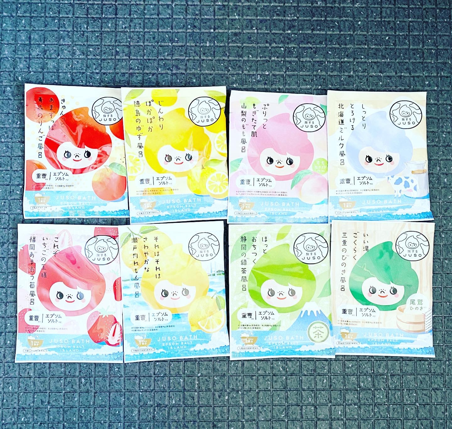 - 旅するJUSOちゃんのご当地入浴剤シリーズ。 重曹(炭酸水素Na:洗浄成分)のお風呂ですべすべお肌に。 エプソムソルト(硫酸Mg:保湿成分) 、有機ゲルマニウム(レパゲルマニウム:保湿成分) 入り 温浴効果によりじんわり汗、体をぽかぽか温める。