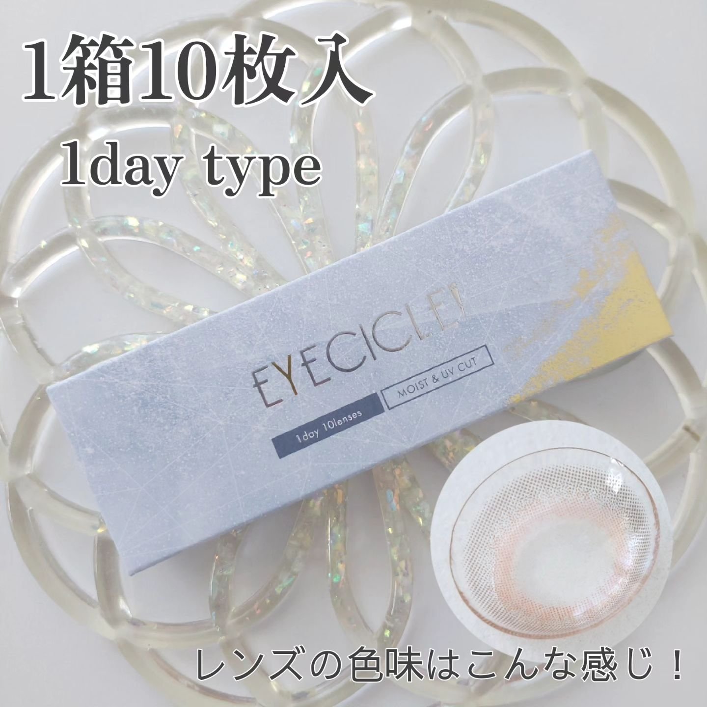 - 溶けゆく氷に反射にする、光の粒のような美しい瞳を...。 国内承認カラコン最小*サイズ【DIA13.8mm】で小さく盛れる透明感カラコン『EYECICLE(アイシクル)』 三白眼や黒目が小さいことを隠すのではなく、黒目そのものを活かし極限まで自然に可愛く、そして美しく魅せるデザインを実現しました。 ※小さいからこそ、徹底的こだわりました※ ・極小ドットで裸眼に溶け込むように馴染むなめらかで美しい発色。 ・キツくなりがちな印象をほわっと優しい印象に変えてくる不均一でまだらなドットデザイン。 ・奥目に対処できる立体感のあるガラス玉のようなデザイン ・太陽の光を浴びているかのようにキラリと輝く透明感。 *高度医療機器承認カラコン 2025年6月時点