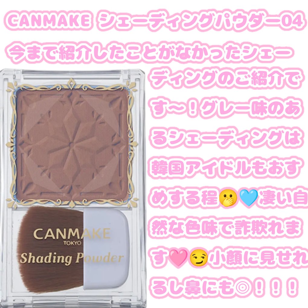 何度もリピしているキャンメイクのシェーディングパウダー🤎 どんどんパケも可愛くなってブラシも使いやすくなってカラバリも豊富にあるのでずっと愛用しています😇🫶 04のアイスグレーブラウンはブルベ向きのお色🩵ですが個人的にはイエベさんでもそこまで浮くことのないようなお色かと思います😌 自然な陰影がだせる平ブラシ付で これまたこちらもふわふわで使いやすく持ち運びにも便利です🤲🥰