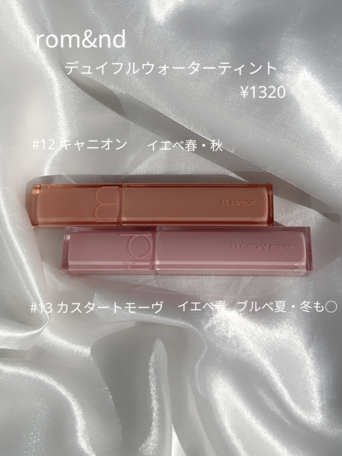 ✩…✩…✩…✩…✩…✩…✩…✩…✩…rom&ndロムアンドサンリオコラボデュイフルウォーターティント13カスタードモ-ブ17メロウシュガー✩…✩…✩…✩…✩…✩…✩…✩…✩…【色味】13カスタードモーヴくすみ系...
