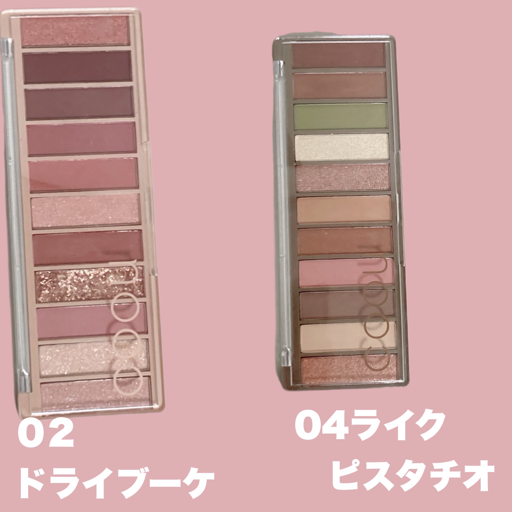 coouアイシャドウパレット02ドライブーケ¥220ラメもあるし、普段あまりつけない色を選んでみました!いつも最初から高いアイテムで普段使わない色にチャレンジしてしまうので試してみて良ければ似た系統を試してみようかなと思います11色もあるので...