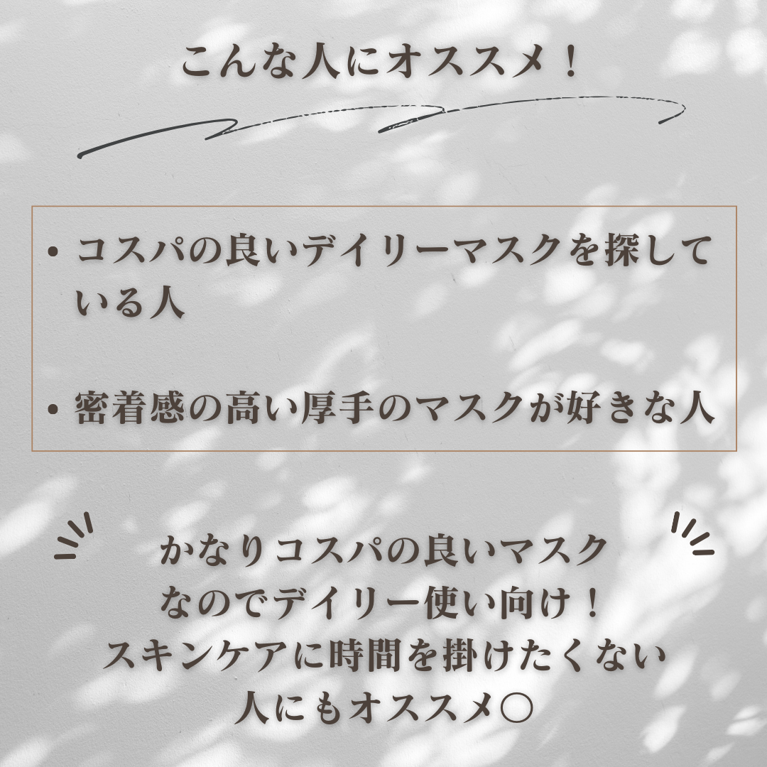 | スキンケアランキング第54位 | シートは厚みがあるんですが、柔らかいので顔にピタッとつくのがいいんですよね〜! | 詳細を見る | |