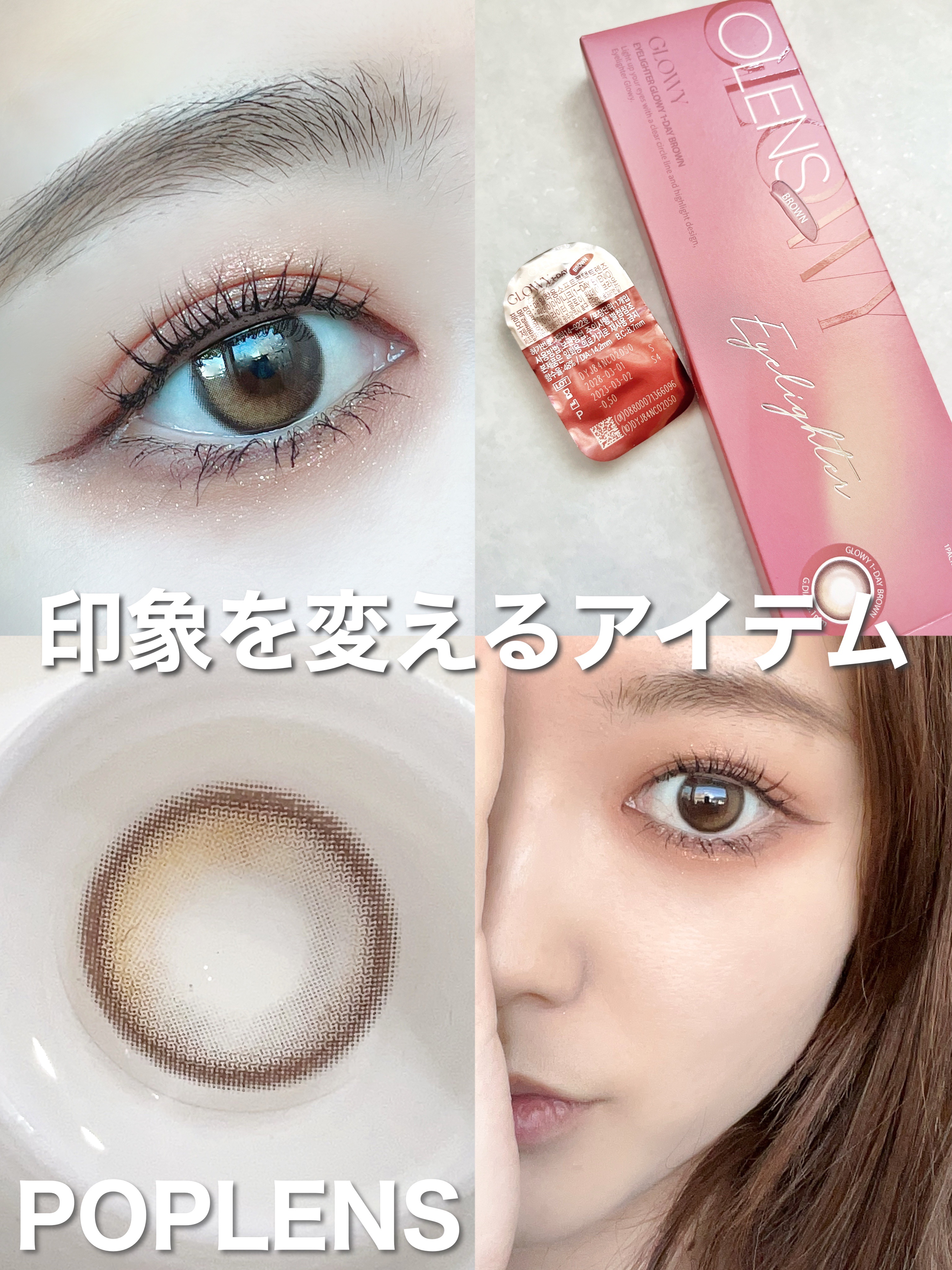 - 韓国カラコン業界の話題のブランド『OLENS(オーレンズ)』の日本正式承認商品シリーズ。世界中から注目を浴びるグループ「NewJeans (ニュージーンズ)」がイメージモデル。 日本でも定番のシリーズ『Glowy』から、瞳にツヤ感を与えるオリーブカラーが登場。 ほんのりで繊細なハイライターカラーで、立体的に輝く瞳を演出する瞳にツヤを出す水光レンズ。ソフトなカラーで優しいちゅるんとした瞳に。 瞳になじむ黄金色のグラデーションが、まるで内側から輝くような立体的な瞳を演出します。 ■使い方 コンタクトレンズは高度管理医療機器です。必ず眼科医の処方に従って購入してください。 ■使用上の留意事項 コンタクトレンズは高度管理医療機器です。眼科医の指導に従い装用期間を厳守し、正しくお使いください。眼の定期検査を必ず受けてください。添付文書を必ず読み、取扱方法、装用時間を守って正しくお使いください。少しでも異常を感じたら、直ちに眼科医の検査を受けてください。