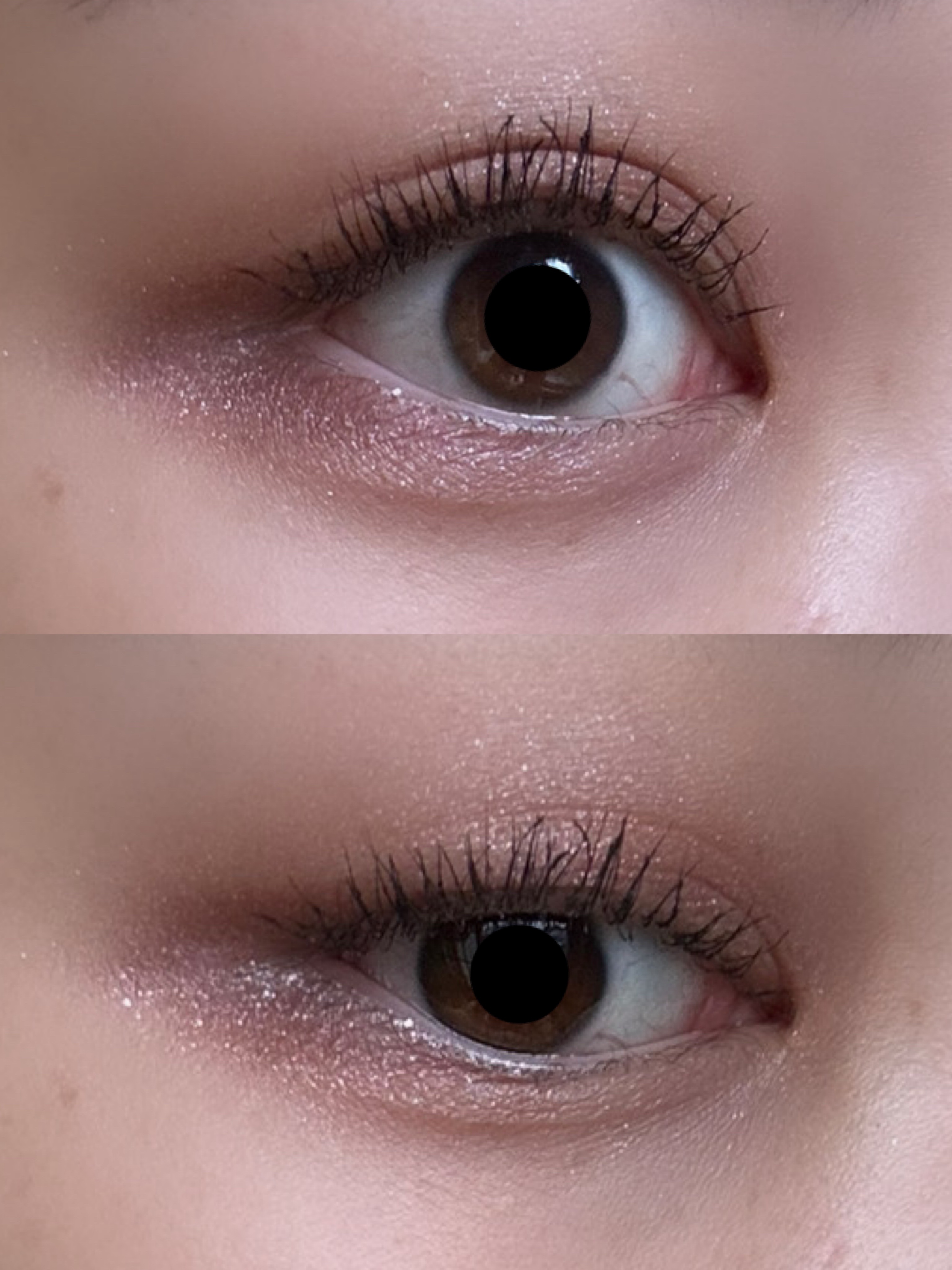 ピンクブラウンで今年の秋冬は大人っぽ甘いメイクはいかがですか??🩷🖤 ラメも繊細で美しくギラギラしすぎないので上品な印象にかつ、ホリデーらしい特別感のあるアイメイクに仕上がりました♡