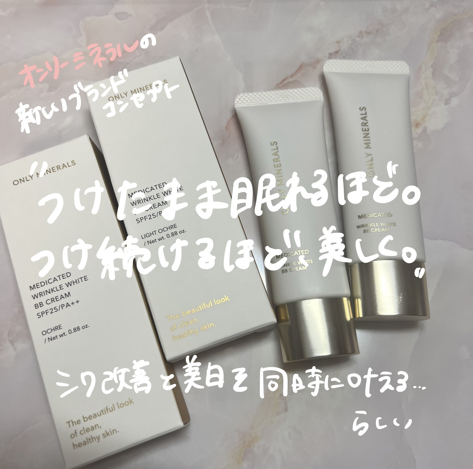オンリーミネラルさまからいただきました。薬用リンクルホワイトBBクリーム✨✨SPF25/PA++で医薬部外品🥰つけたまま眠れるほとやさしいBBクリームで石けんで落とせるよ◎使ったのはオークルの色!こっくりした感じもあるけどスルスル〜っとなめら...