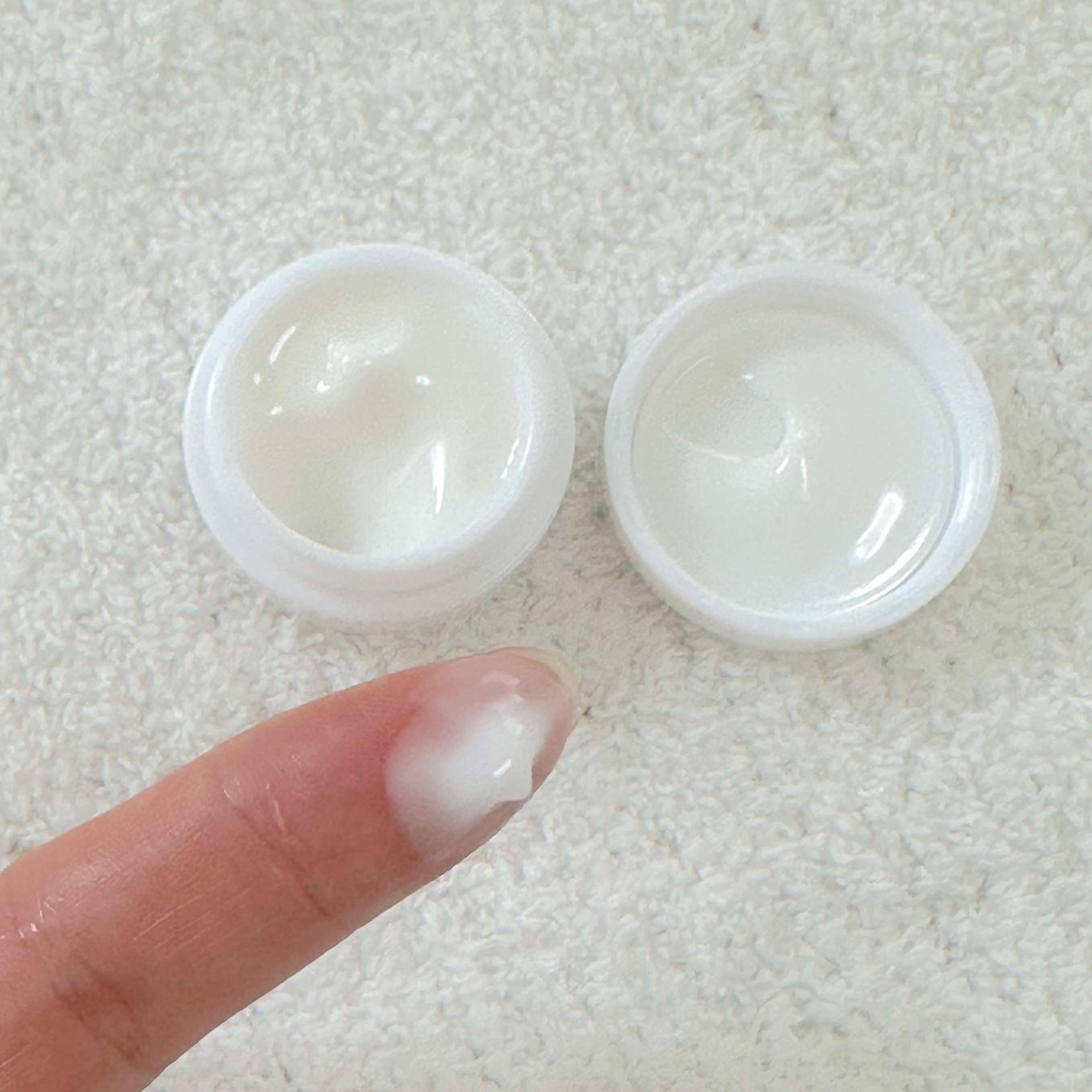 化粧水は甘めの香りで、少しとろみがあり肌に馴染ませやすいです。 美容液もとろみがあり、伸びが良く、少量でも顔全体にしっかり塗ることができます。 クリームは柔らかいテクスチャで、しっかり保湿し、モチッとした肌になりました。