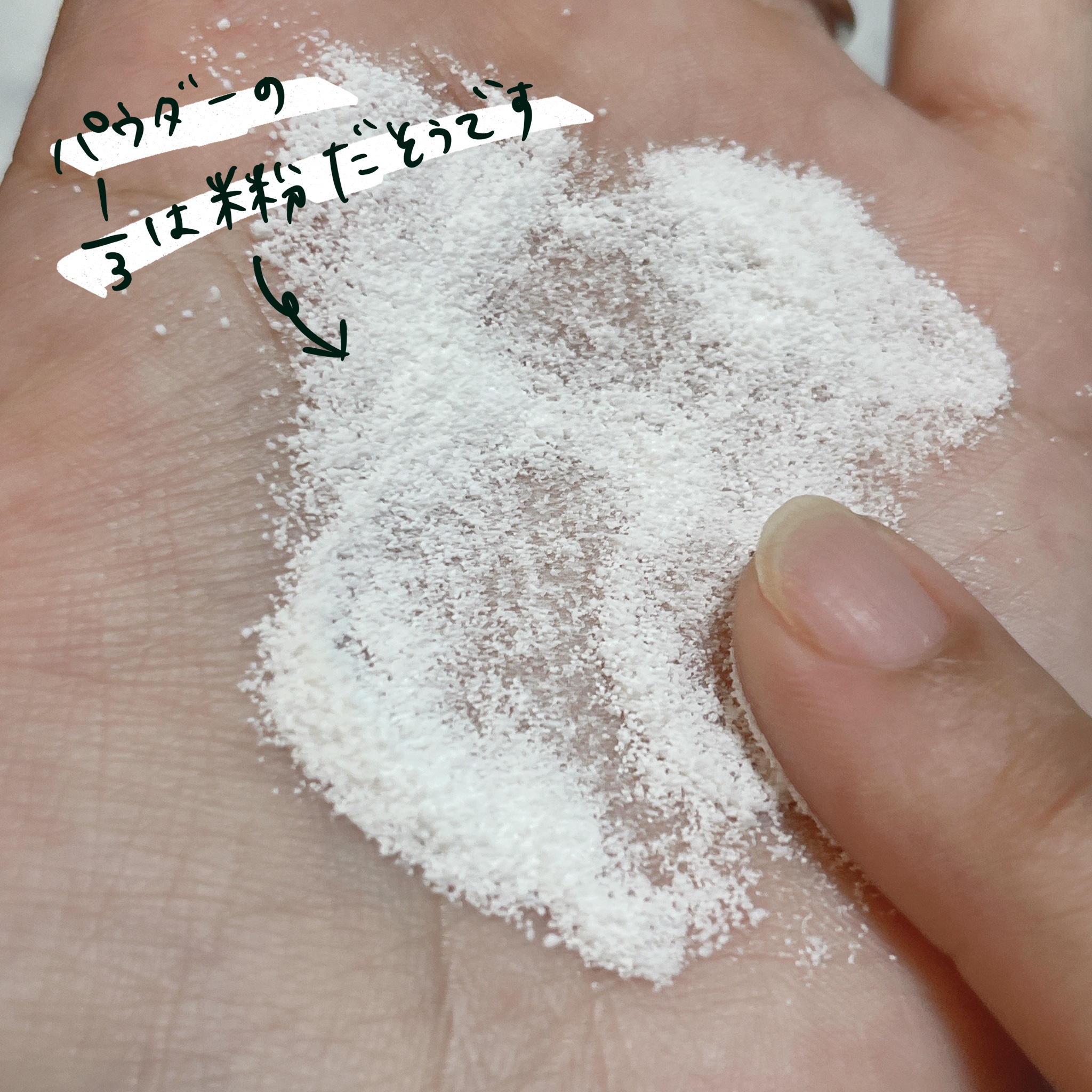 - 結晶セルロース、コメ粉、ラウリルリン酸Na、ラウロイルグルタミン酸Na、ステアロイルグルタミン酸Na、水、ココイルグルタミン酸Na、ラウリルベタイン、ラウロイルメチルアラニンNa、サッカロミセス/(チャ葉/オキナワモズク/コメ)発酵液、パパイン、コメヌカエキス、セリシン、加水分解シルク、加水分解コンキオリン、プロパンジオール、デキストリン、ラウロイルグルタミン酸ジ(フィトステリル/オクチルドデシル)、エチルヘキシルグリセリン、トコフェロール、BG、エタノール、フェノキシエタノール