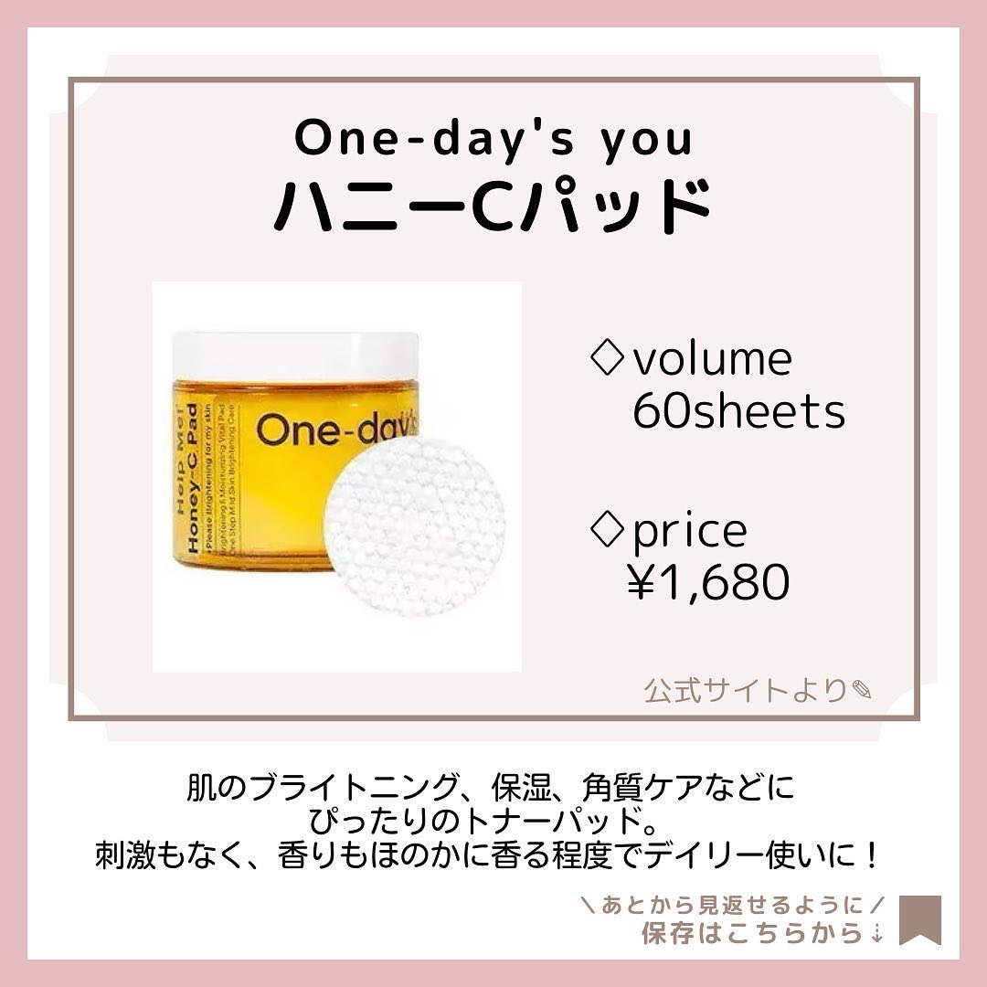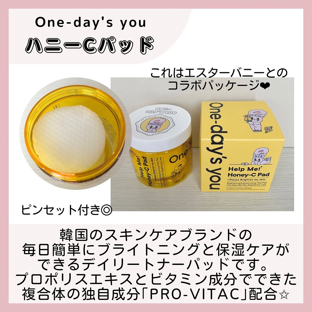 韓国スキンケア専門ブランドOne-day'syou🌿♡人気商品、トナーパッド3種類をお試しさせていただきました🥰✨自然由来の成分を使用していて、お肌タイプやお悩み別に様々な商品を開発、販売しているそうで、トナーパッドもお肌タイプ別に分かれてい...