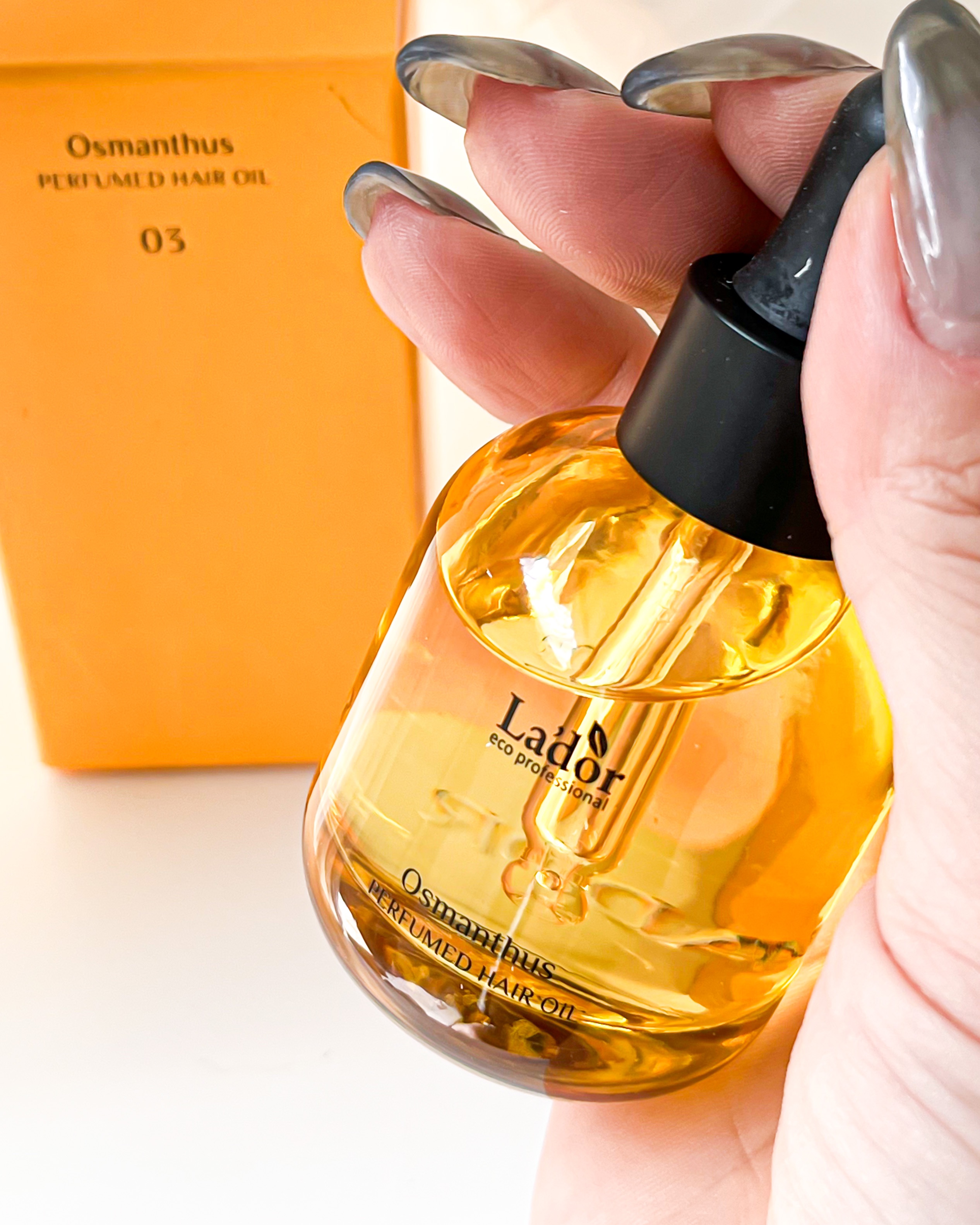 𝐋𝐀𝐃𝐎𝐑𝐏𝐞𝐫𝐟𝐮𝐦𝐞𝐝𝐇𝐚𝐢𝐫𝐨𝐢𝐥🧡Osmanthus/30mlオリヤンで見かける度に、ずっと使って見たかったLADORのパフュームヘアオイル!コロンっとしたお洒落なパケだけでも気分上がるけど中身も優秀で、傷んだ髪を落...