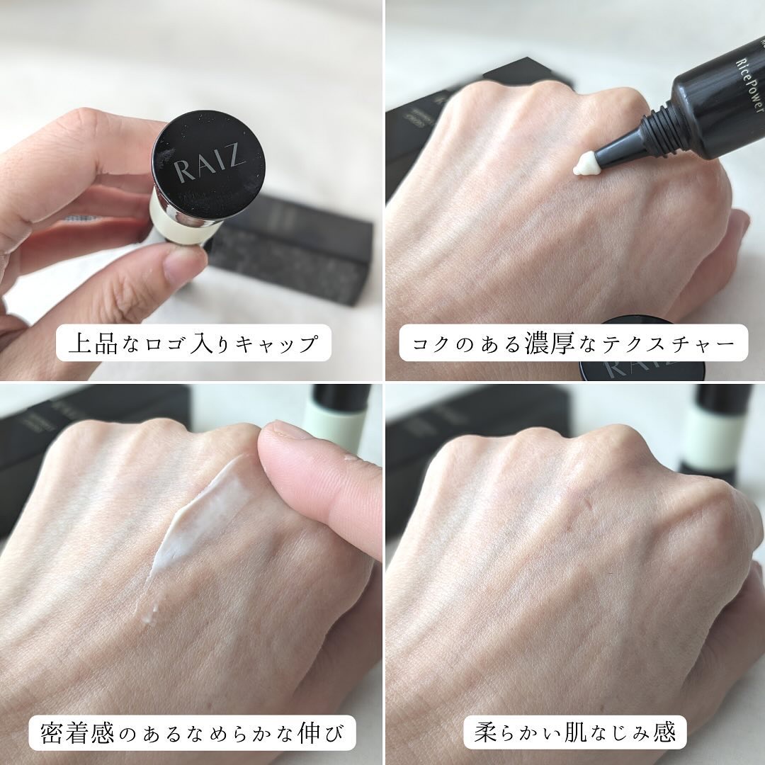 | スルスルっと伸びて、肌になじむとほんのりツヤ感を感じます。 後肌はさらり。 | 詳細を見る | ||