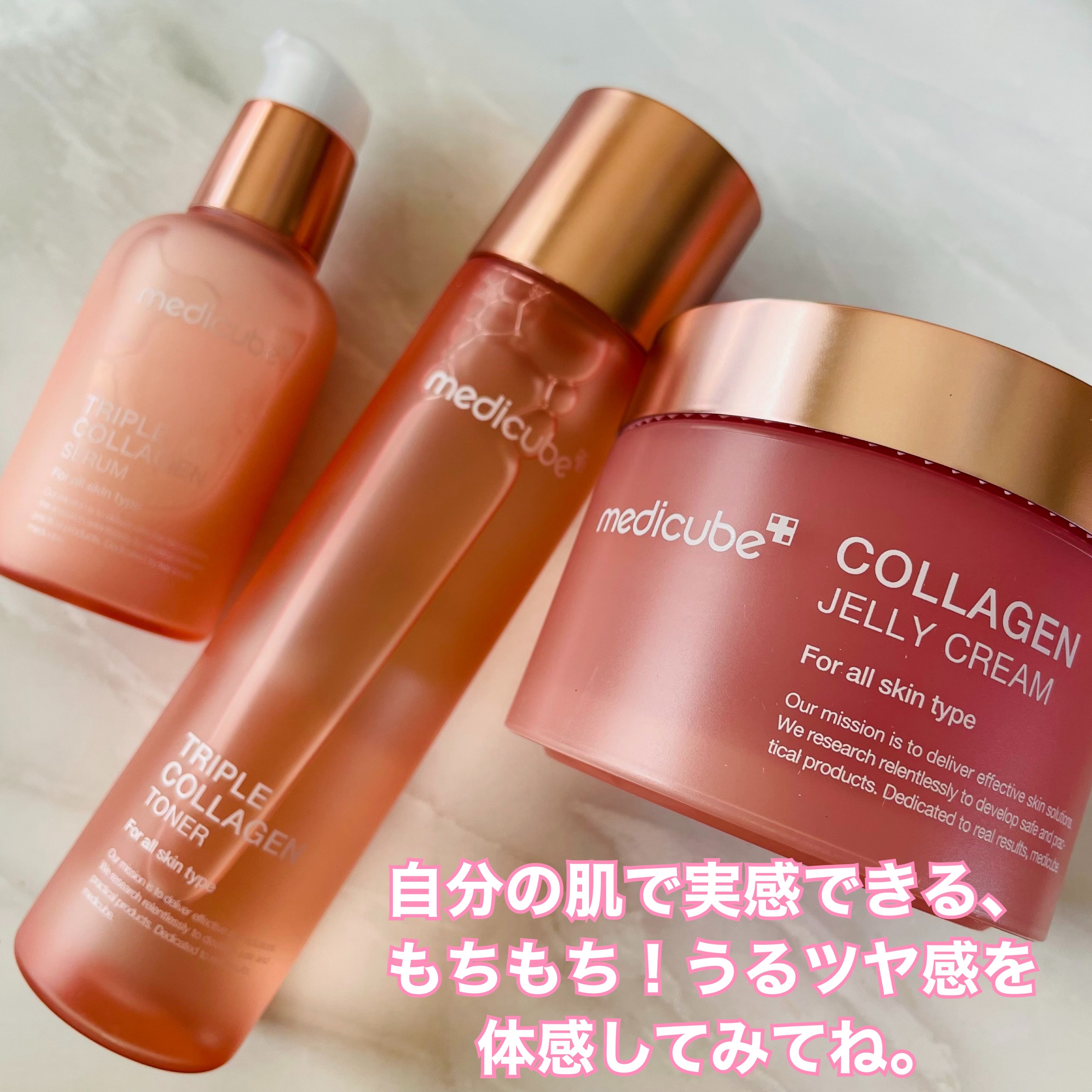 medicubeもち肌コラーゲントナー3.0もち肌コラーゲンセラム3.0もち肌コラーゲンセラム4.0メディキューブのコラーゲンライン3品見た目がもう好みでした!ピンクが可愛いパケ✨たっぷり使えました!𓈒𓏸𓐍𓂃𓈒𓏸𓂃◌𓈒𓐍𓈒𓈒𓏸𓐍𓂃𓈒𓏸𓂃◌𓈒𓐍...
