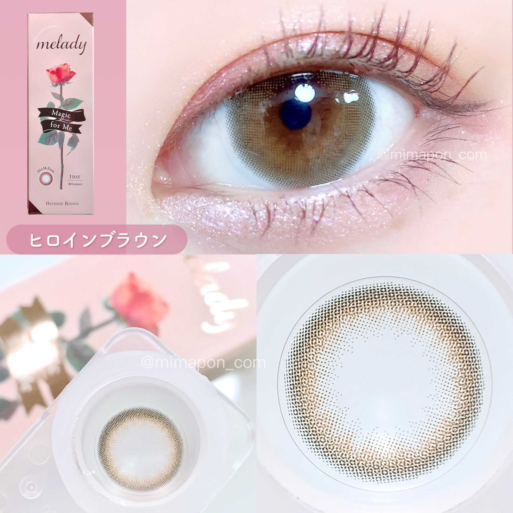 - ※2025年6月以降、商品パッケージ裏面・側面の一部表記を順次変更いたします。尚、これにかかる商品の交換・返品は承っておりません。 ヒロインの瞳の法則♡ ナチュラルなのにしっかり盛れるDIA14.5mm! ■ヒロインブラウン 透明感たっぷりなブラウンレンズ。瞳に馴染む色だからとってもナチュラル。 ■アイドルリング さりげない細フチとちゅるんブラウンがナチュラルに瞳を強調♡ ■ライアーピンク ピンクブラウンのフチとムラのあるデザインで立体感のあるきらきらな瞳を演出♡ ■レディブラック じゅわっとぼかした繊細なデザインで透明感に満ちた存在感のある瞳を演出♡ ■プリンセスショコラ しっかり太フチとあまくとろけるショコラブラウンでプリンセスみたいに愛される瞳に♡ ■スターグロー くりっと盛れる太フチとうるみツヤめく水光カラーで光を取りこむキラツヤな瞳に♡ ■Maria Ring(マリアリング) 絶妙細フチと白っぽ透明感グレージュでちょっぴり背伸びした余裕仕込みレンズ♡ ■Mermaid Ring(マーメイドリング) 絶妙太フチときらめき透明感マーメイドグレーでピュアにうるめく美少女な瞳に♡ カラーコンタクトレンズの不適正使用による眼障害の危険性等などがあります。 ●コンタクトレンズは高度管理医療機器です。不十分な洗浄・消毒など不適切なケアや、長時間・交換期間を超えた装用により、アレルギー性結膜炎、角膜感染症、角膜潰瘍等の重篤な眼障害が発生する危険性があります ●ご使用前に取扱説明書を確認してください 使用上の留意事項 ●眼科医院等を受診してからお求めください ●眼に異常を感じたら直ちにレンズ使用を中止し、お近くの眼科等で診察を受けてください ●医師の指示にしたがってご使用ください ●コンタクトレンズを装用する場合、自覚症状がなくても、眼科医院等での定期検査を受けてください ●レンズに不具合がある場合は使用しないでください