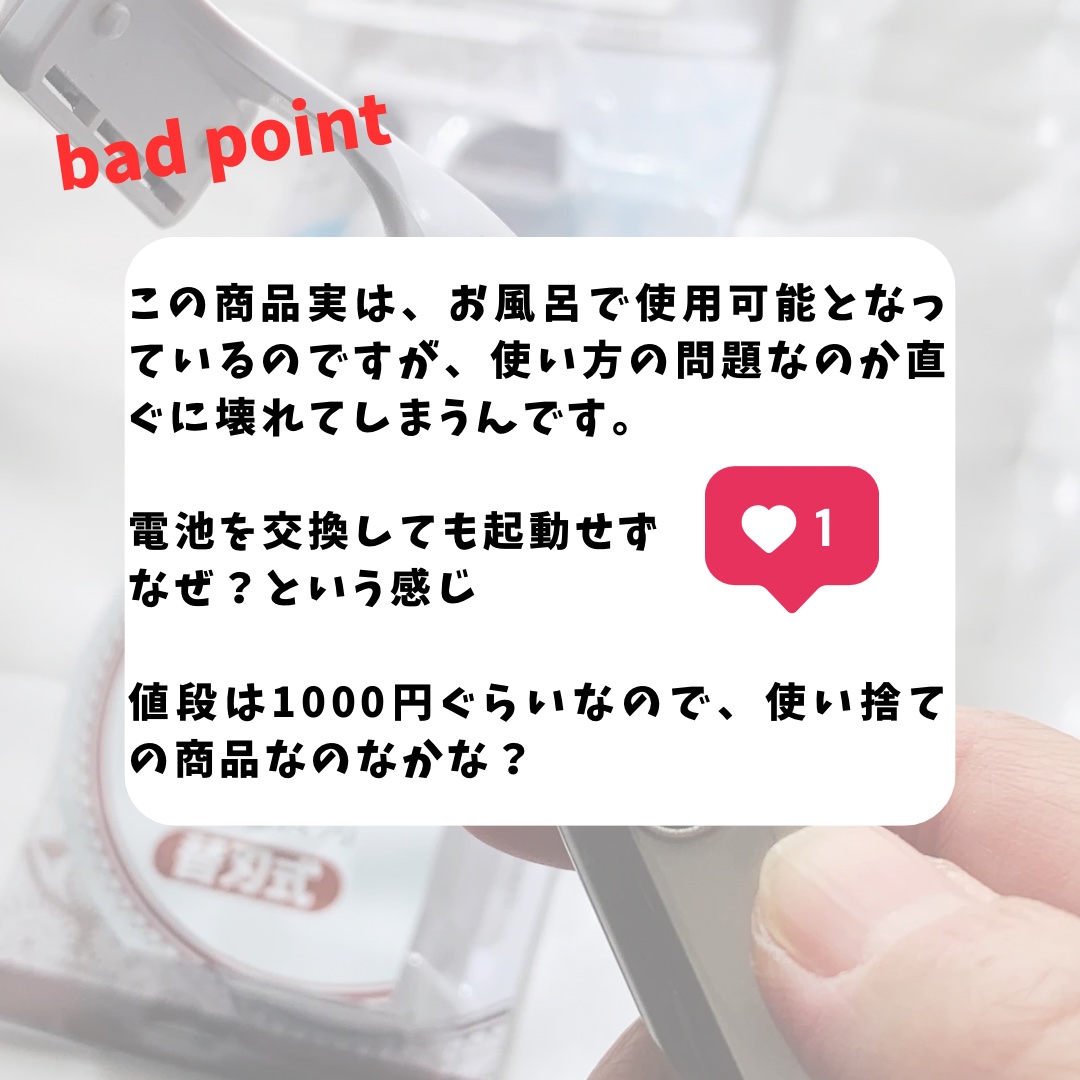 こんにちは!おちゃっぱです!今回はLIPPSを通して貝印様からいただきました❤️頂いたものは"bi-hadaompaTホルダー替刃2個付き"です❤️こちらの商品、ご丁寧に電池までついているのです😭そして水洗いが可能!衛生的✨使ってみた感じ👀電...